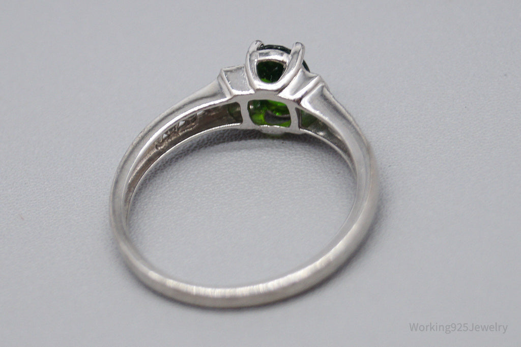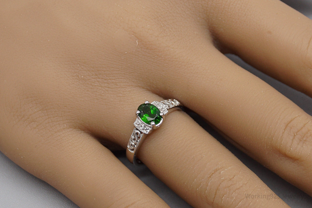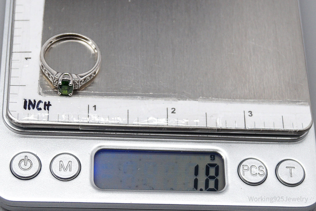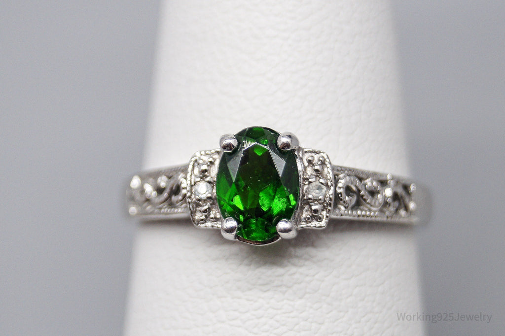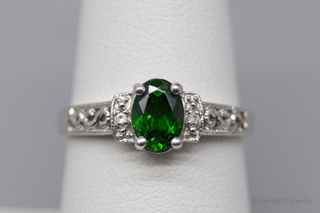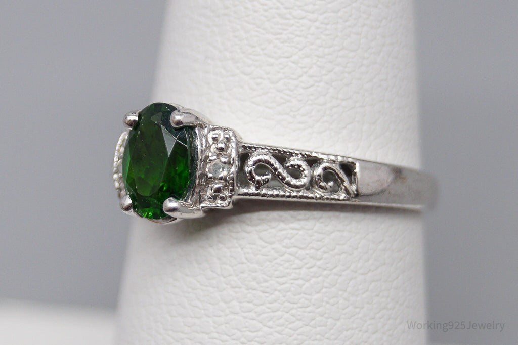 Vintage Green Chrome Diopside White Topaz Sterling Silver Ring - Size 7