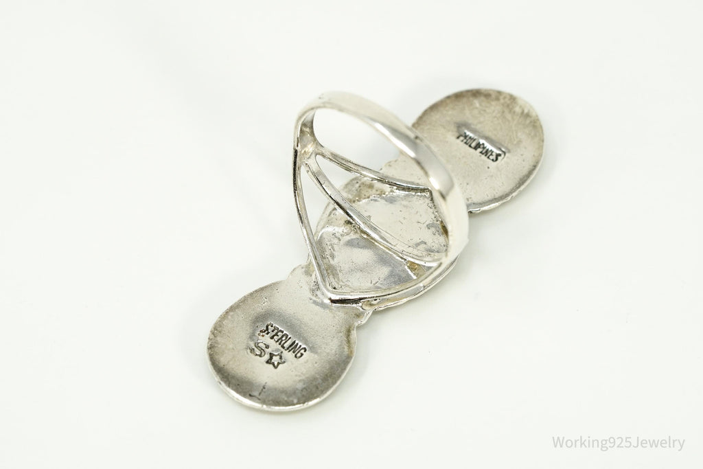 Vintage Green Copper Turquoise Sterling Silver Ring - Size 11.5