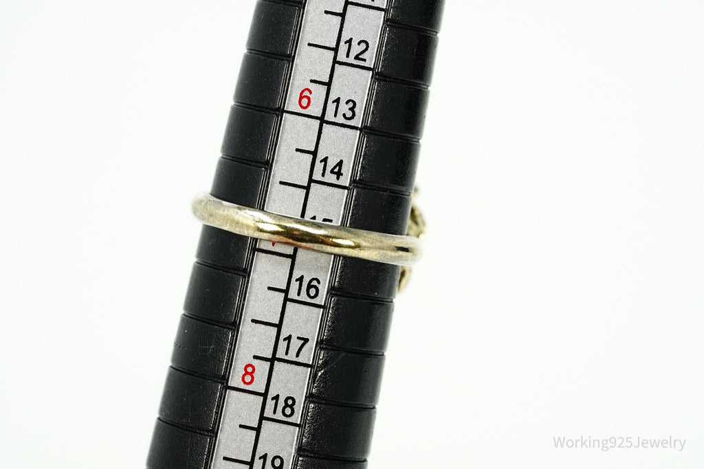 Vintage Green Jade Gold Over Sterling Silver Ring Size 6.75