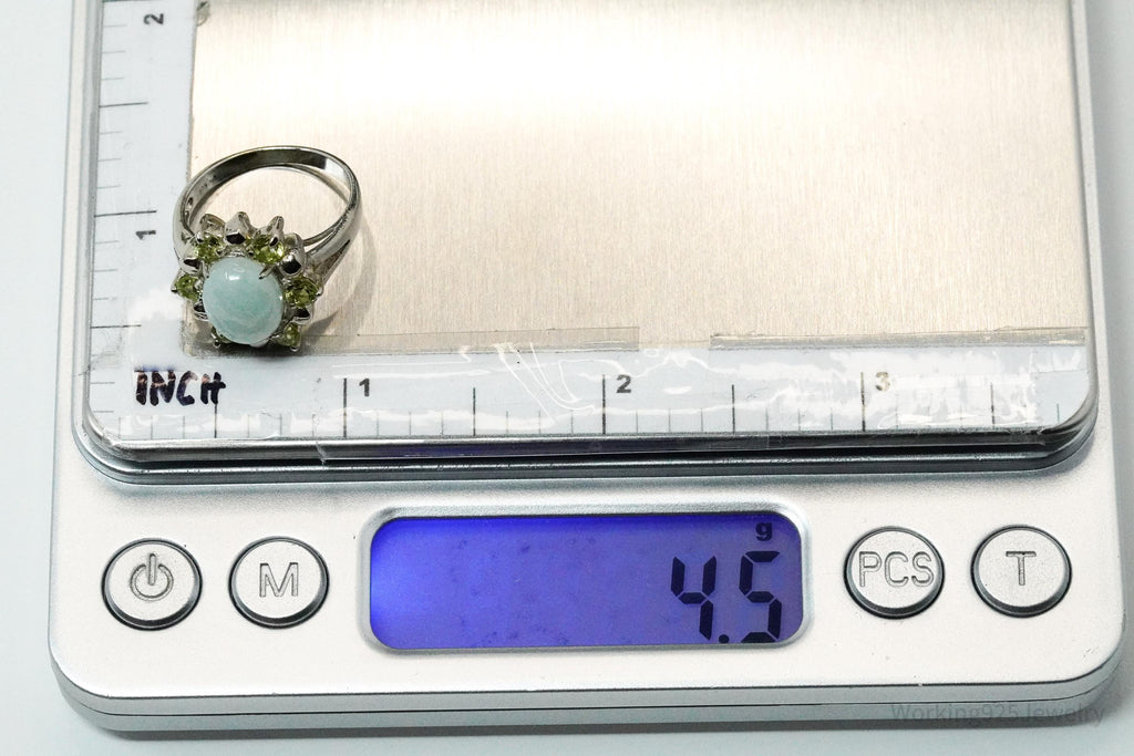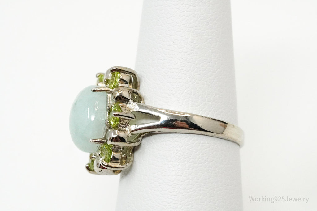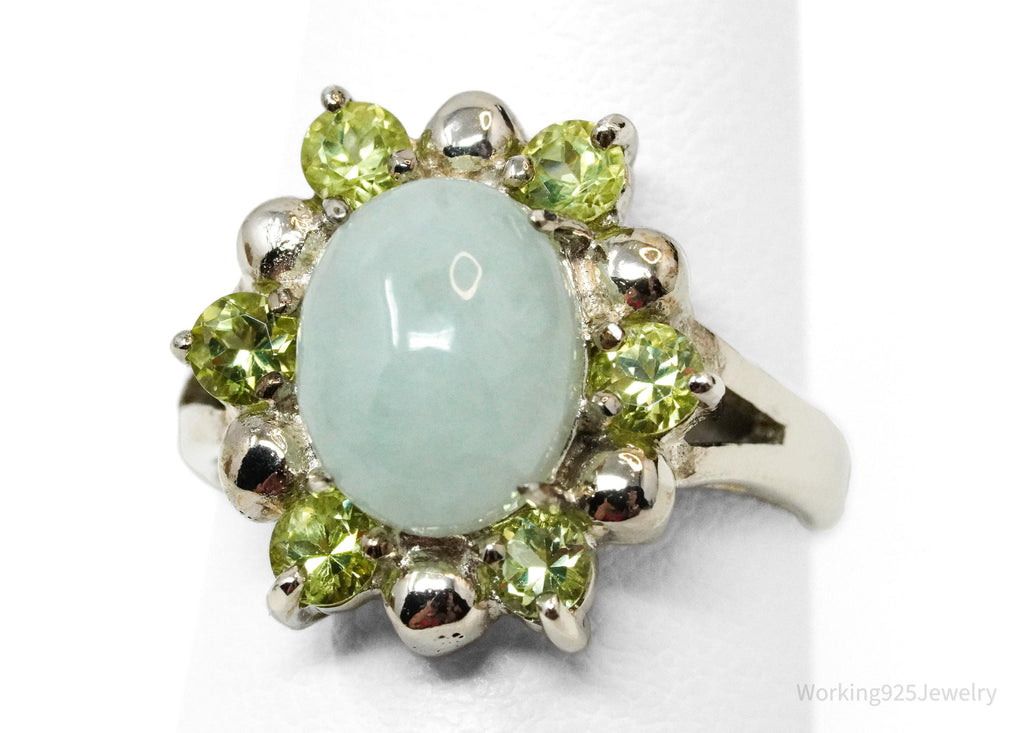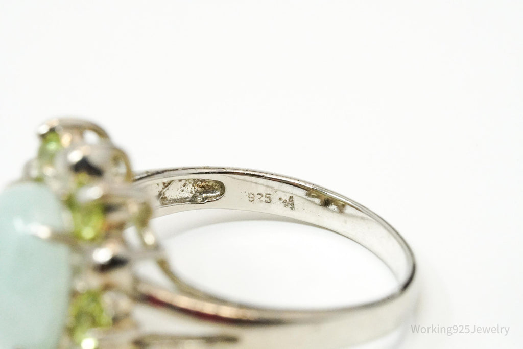 Vintage Green Jade & Peridot Sterling Silver Ring - Size 6
