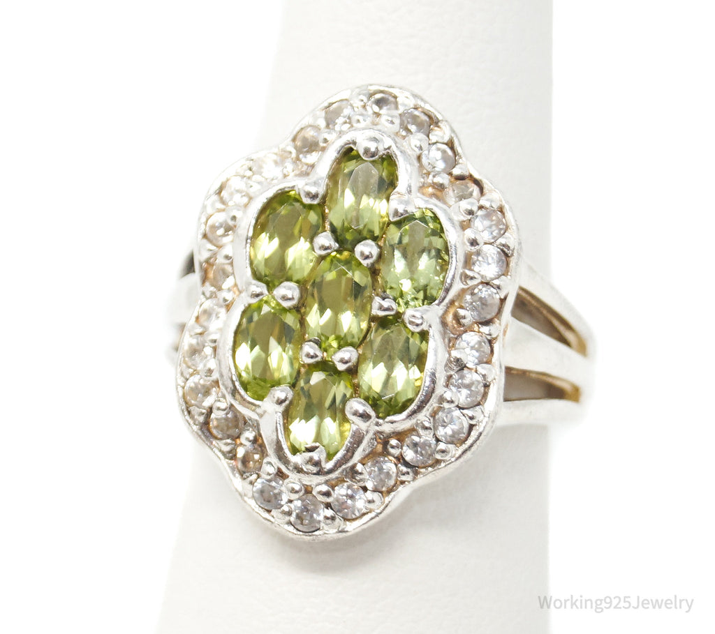 Vintage Green Peridot CZ Sterling Silver Statement Ring - Size 6.25
