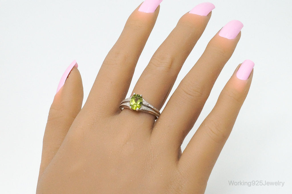 Vintage Green Peridot Sterling Silver Ring - Size 9