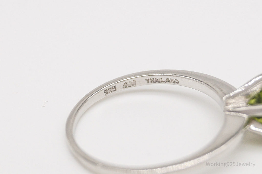 Vintage Green Peridot Sterling Silver Ring - Size 8
