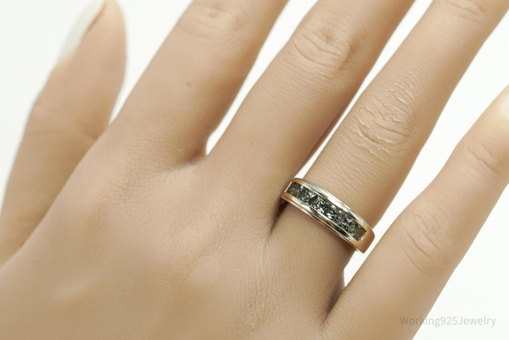 Vintage Green Sapphire Gold Vermeil Sterling Silver Ring - Size 7