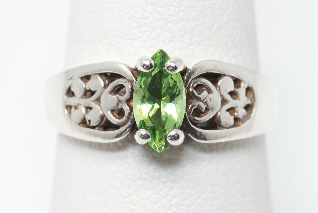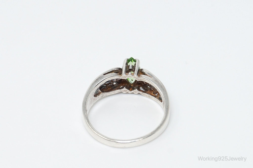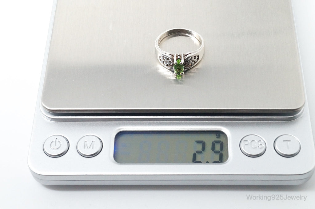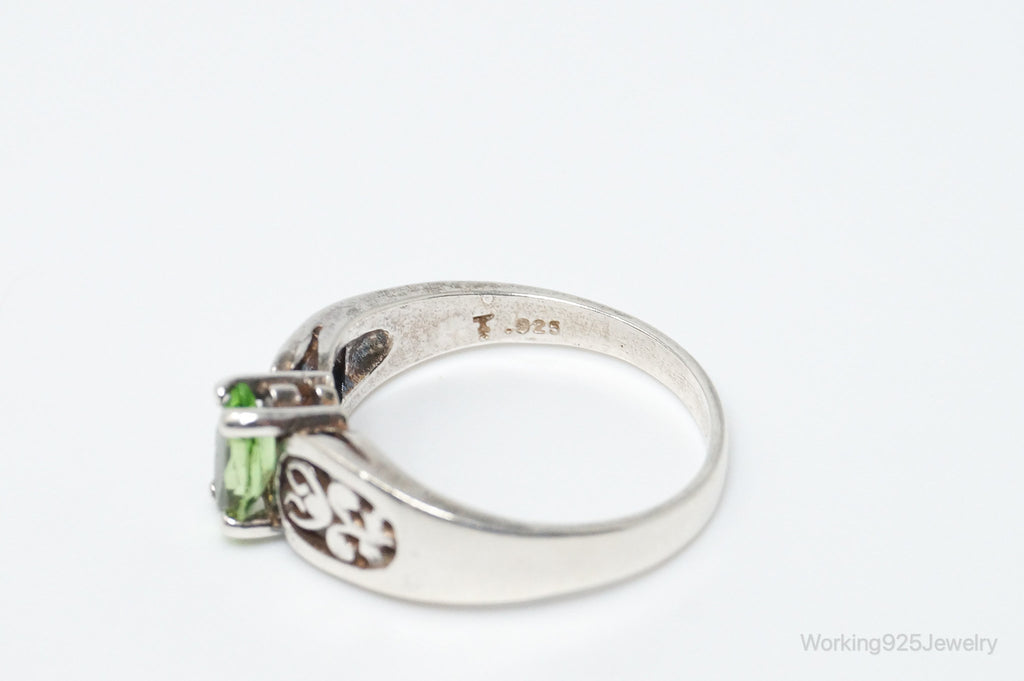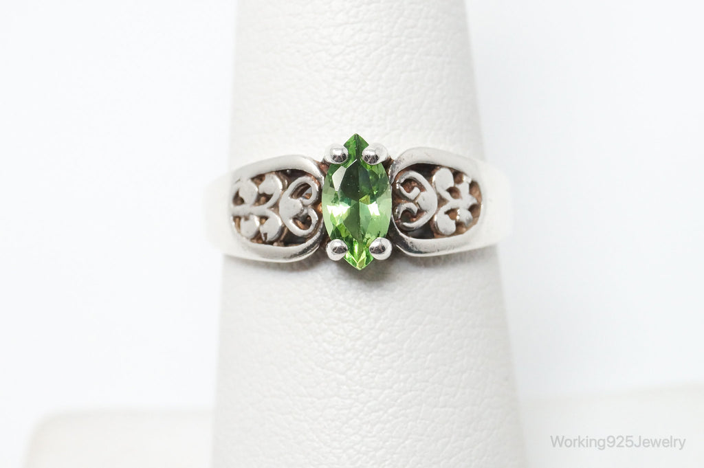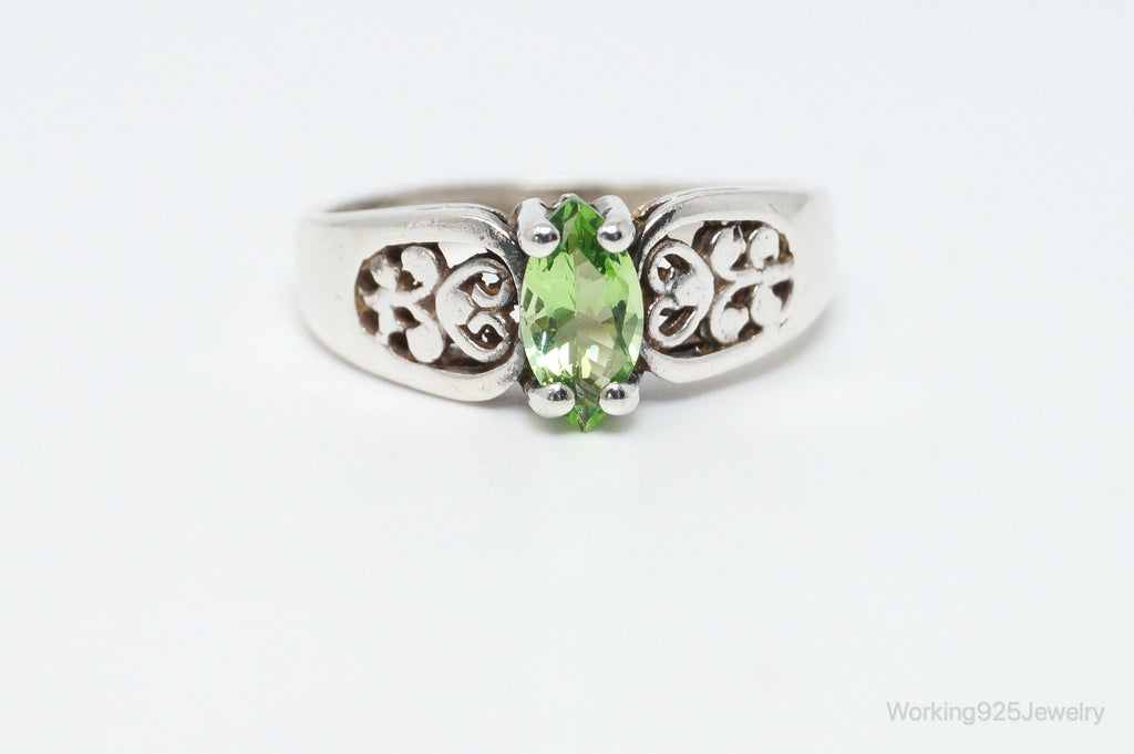Vintage Green Topaz Heart Scroll Sterling Silver Ring - Size 6.75