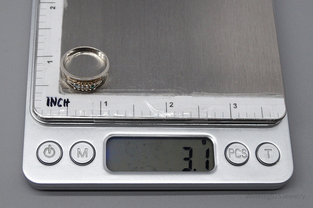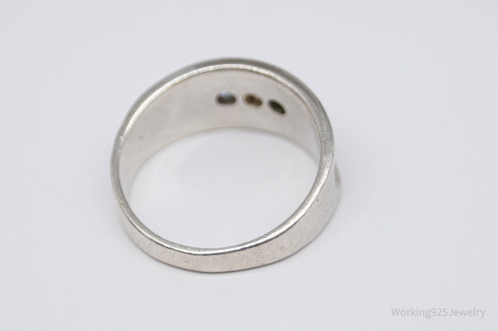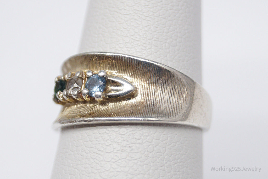 Vintage Green White & Blue Topaz Sterling Silver Band Ring - Size 6