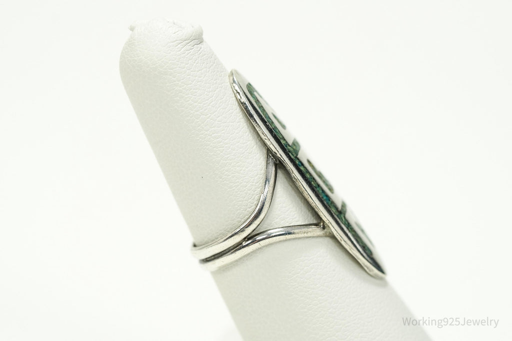 Vintage Handmade Hopi Native American Turquoise Unsigned Silver Ring - Size 6.75