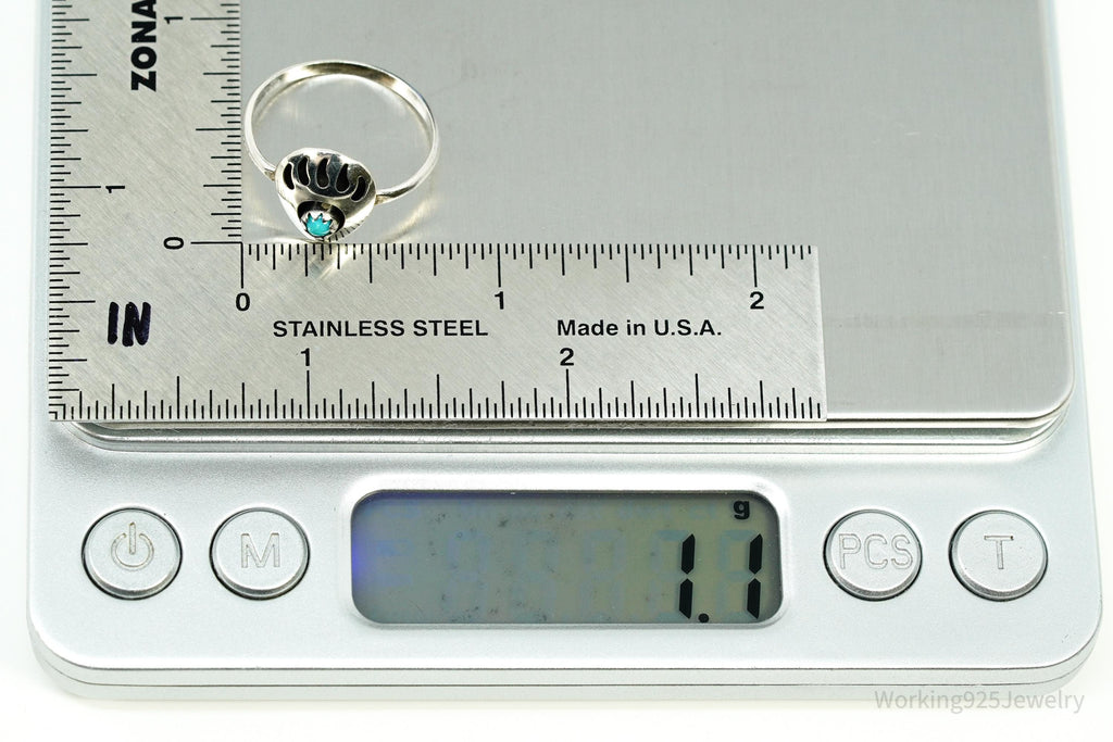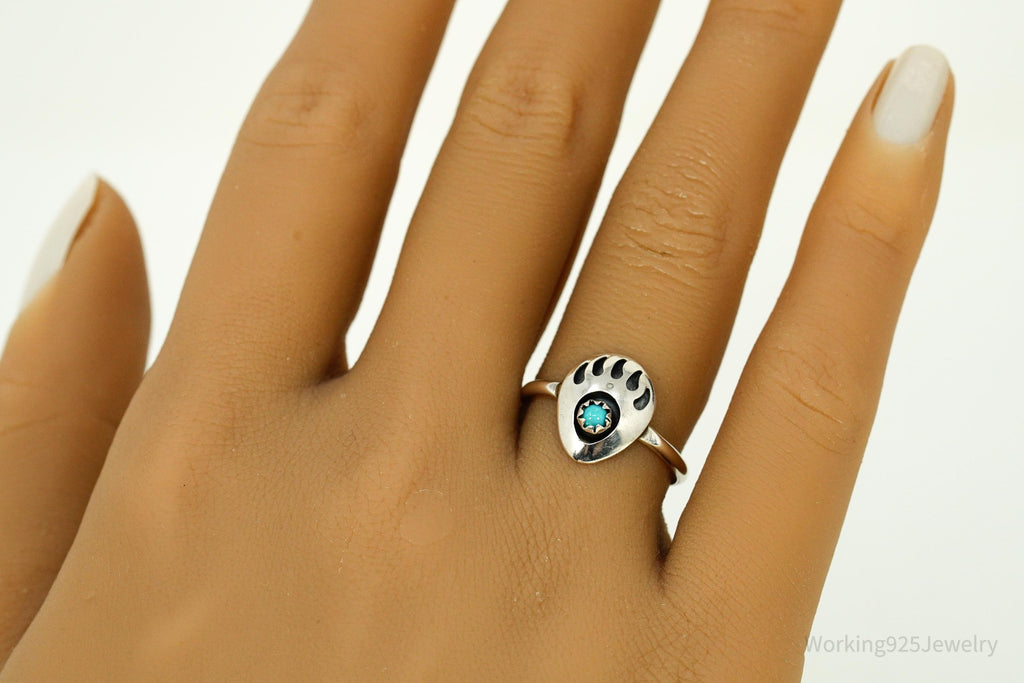 Vintage Handmade Native American Bear Paw Turquoise Silver Ring - Size 8