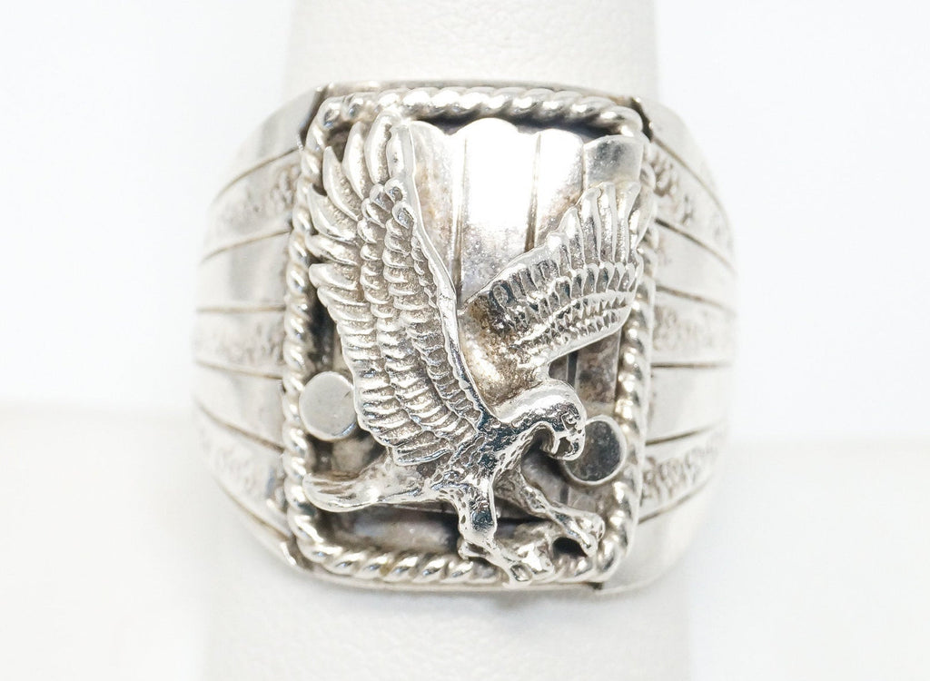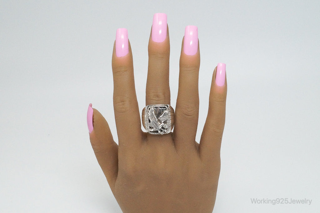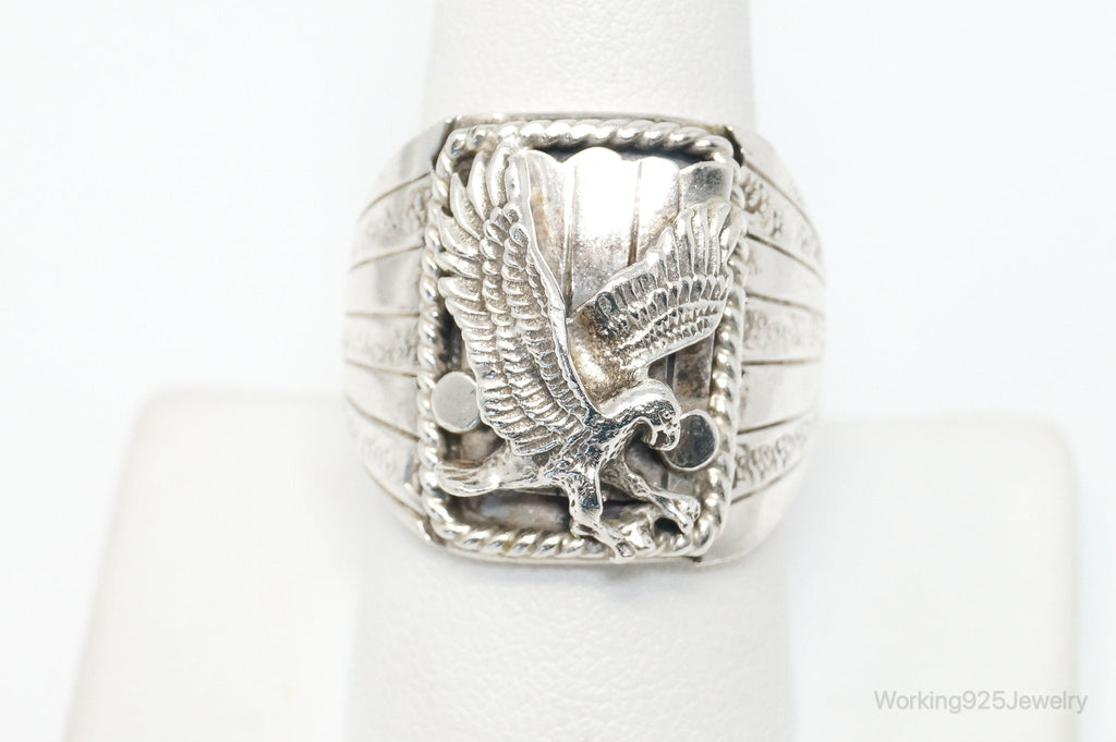 Vintage Handmade Native American S Ray Eagle Sterling Silver Ring Size 9