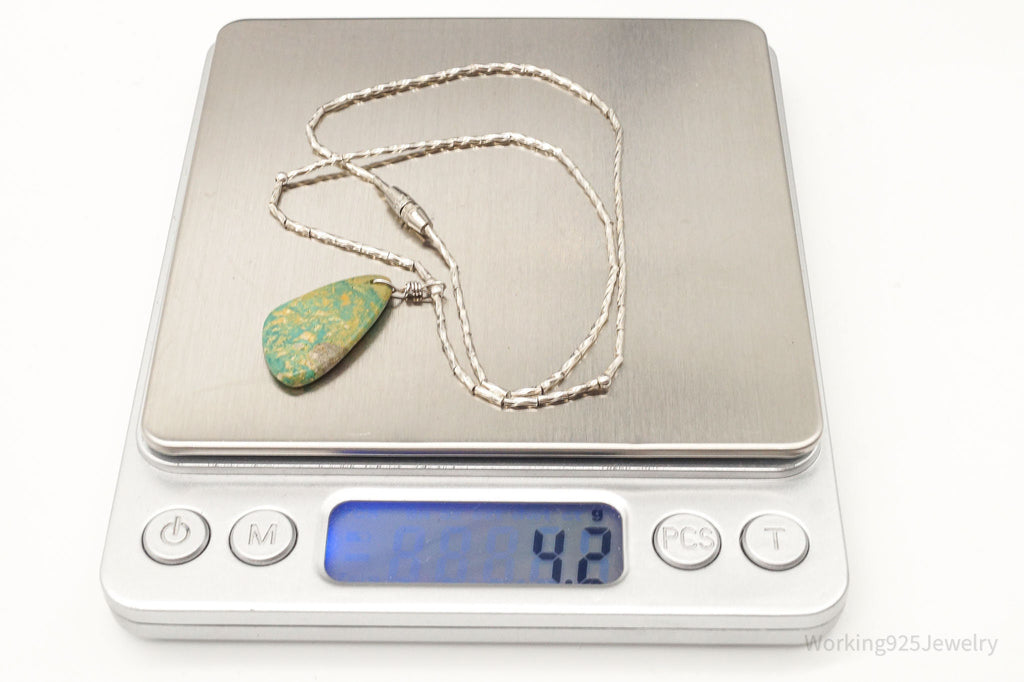 Vintage Handmade Native American Turquoise Silver Bead Necklace