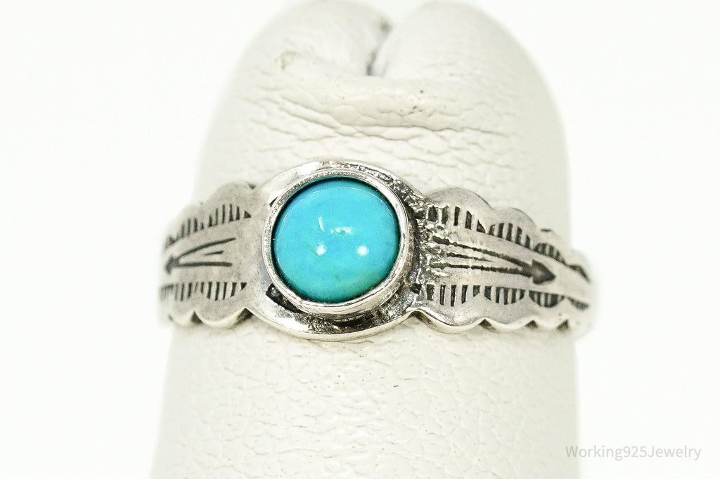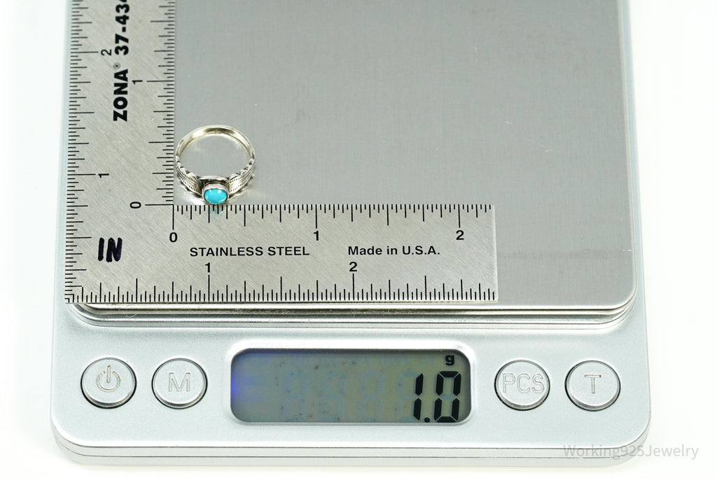 Vintage Handmade Native American Turquoise Silver Ring / Toe Ring - Size 1.25