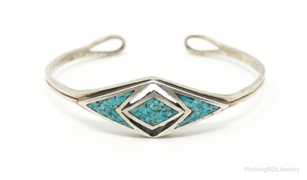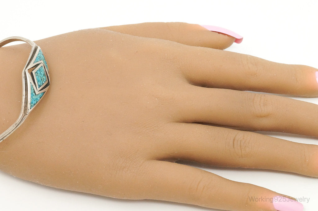 Vintage Handmade Native American Turquoise Sterling Silver Cuff Bracelet