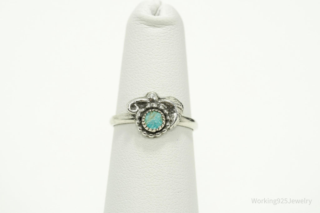 Vintage Handmade Native American Turquoise Unsigned Silver Ring - Size 5.25