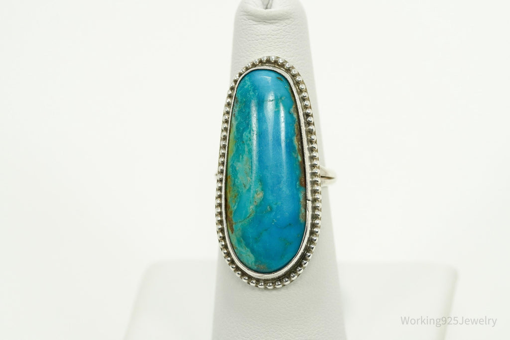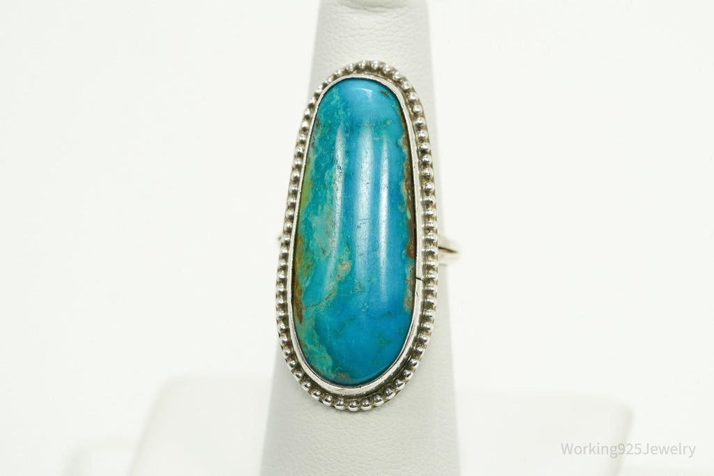Vintage Handmade Native American Turquoise Unsigned Silver Ring - Size 6.75