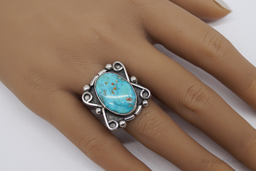Vintage Handmade Native American Turquoise Unsigned Silver Ring - Size 6.75