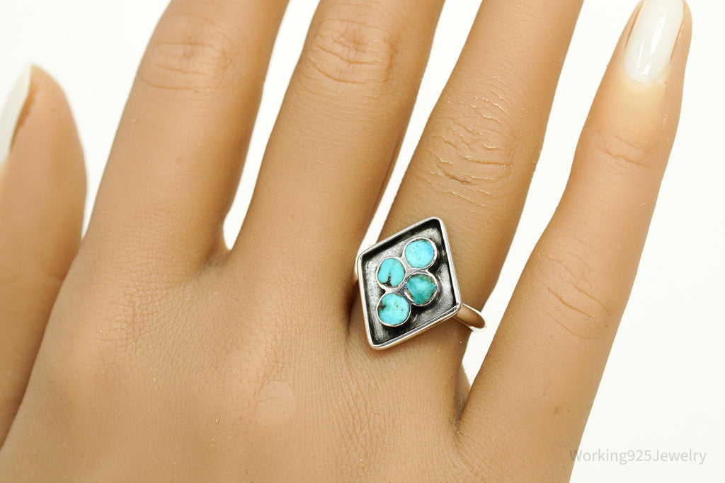 Vintage Handmade Native American Turquoise Unsigned Silver Ring - Size 7.25 Adjustable