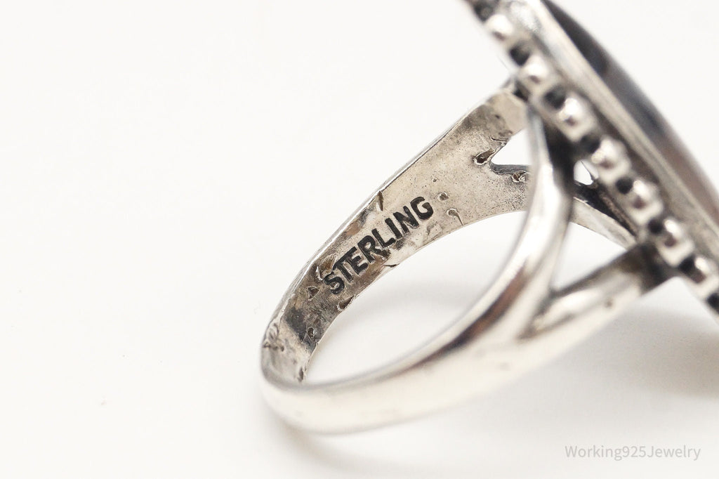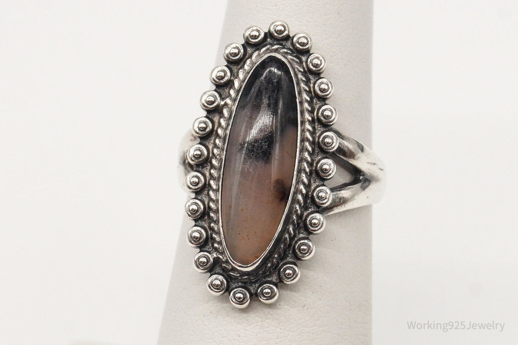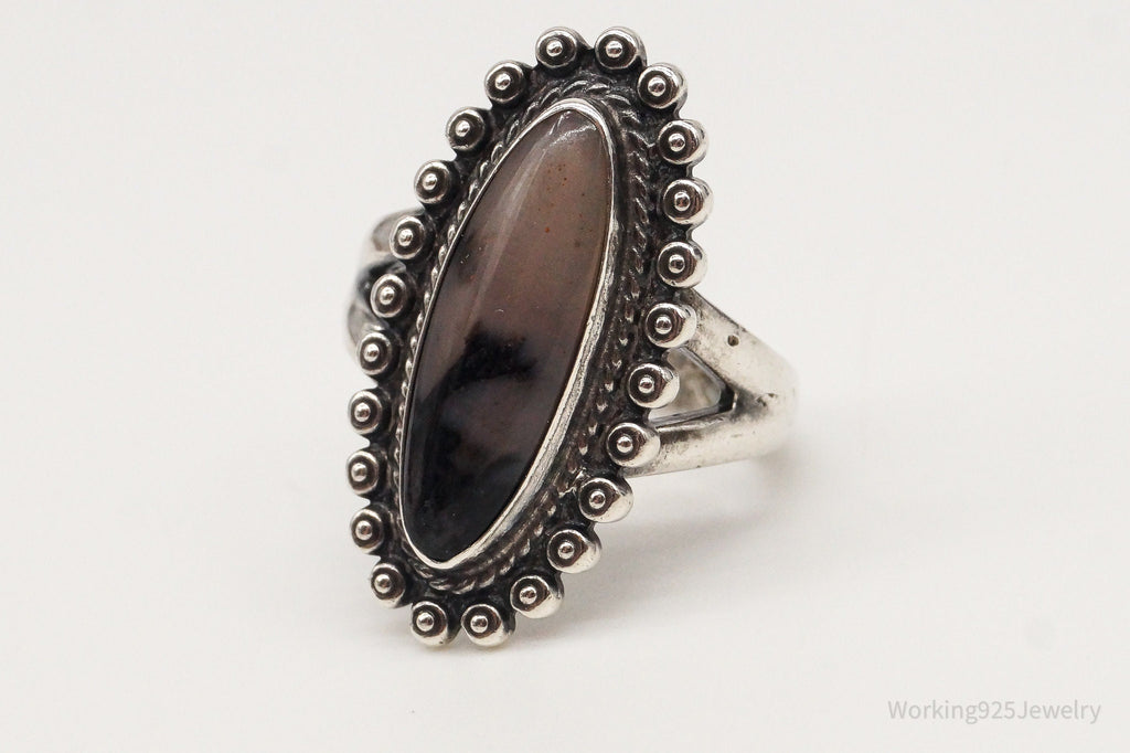 Vintage Handmade Native American Unsigned Agate Sterling Silver Ring - Size 5