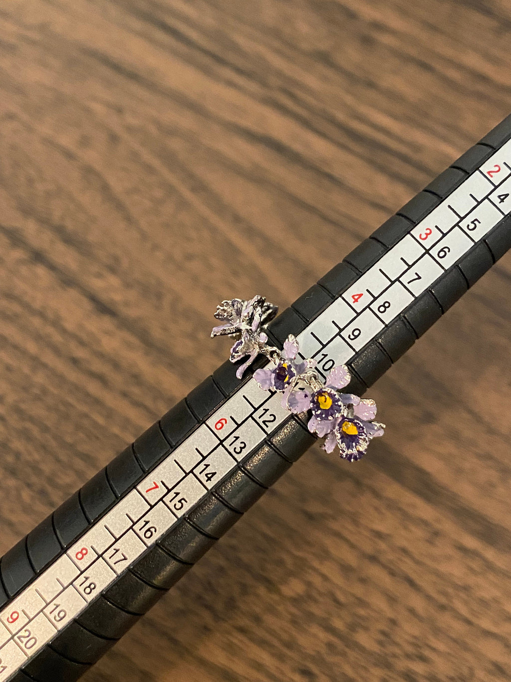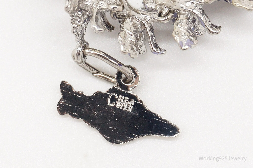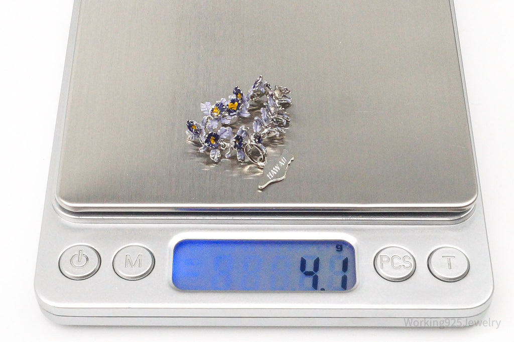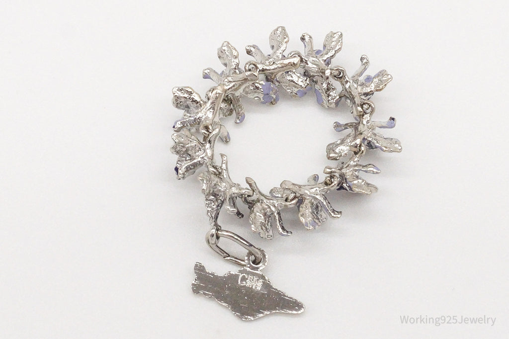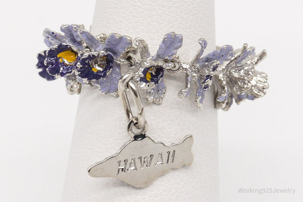 Vintage "Hawaii" State Purple Flowers Enamel Sterling Silver Ring - Size 5