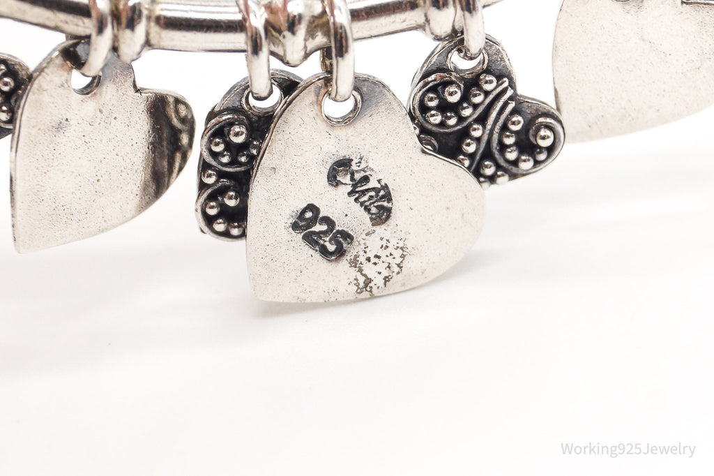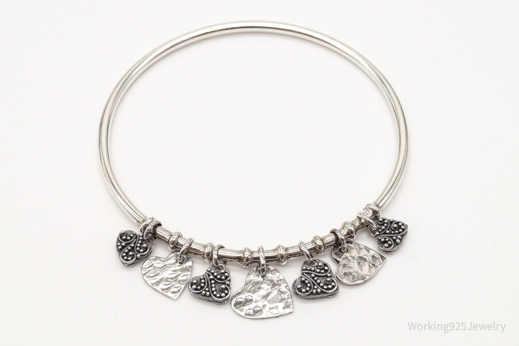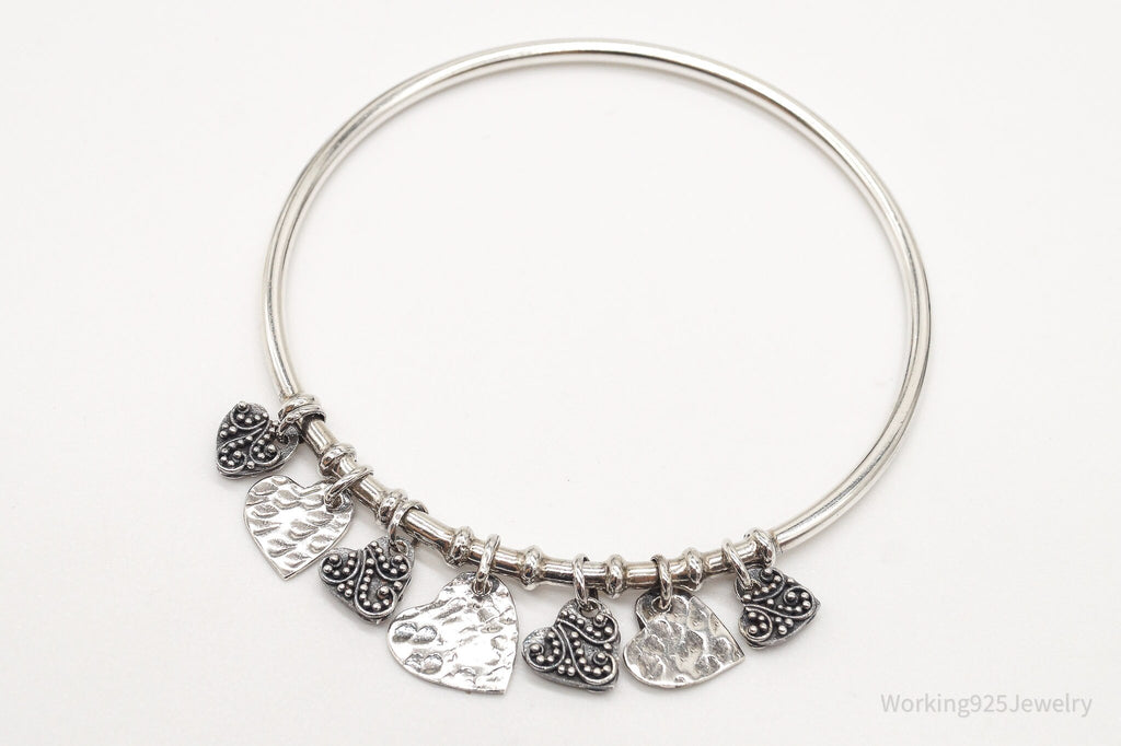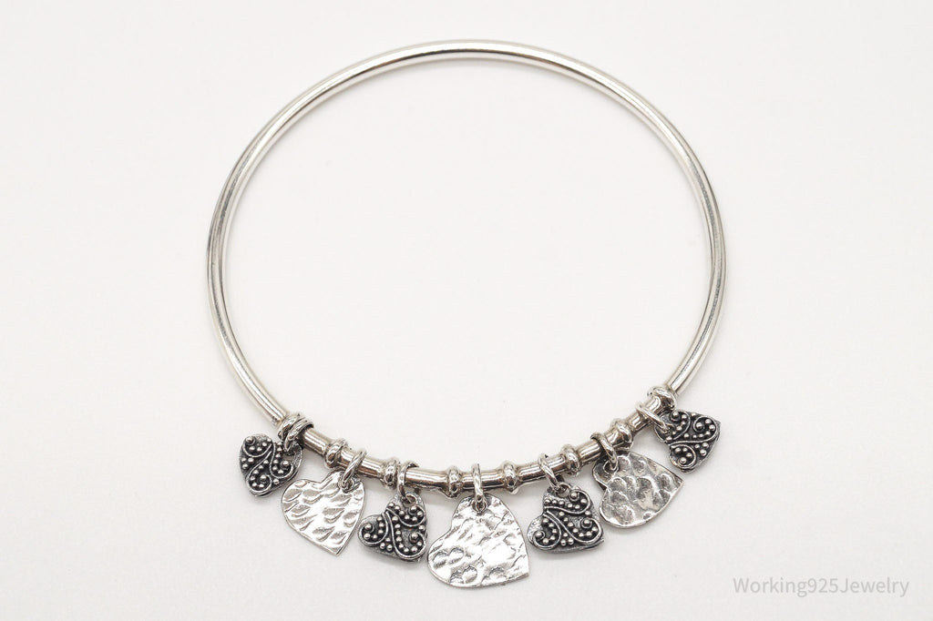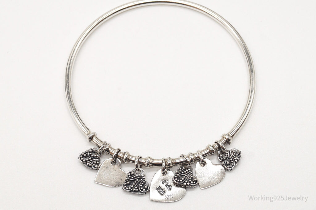 Vintage Heart Charms Sterling Silver Bangle Bracelet