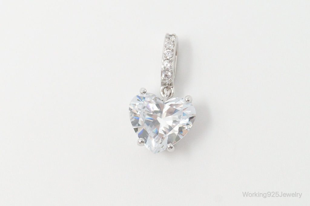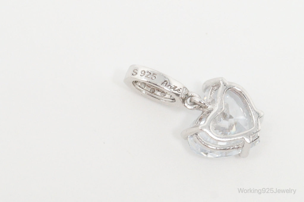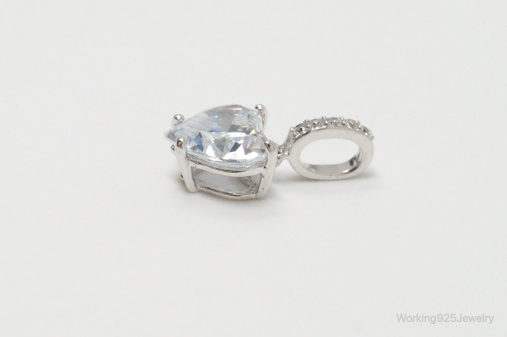 Vintage Heart Cubic Zirconia Sterling Silver Necklace Pendant