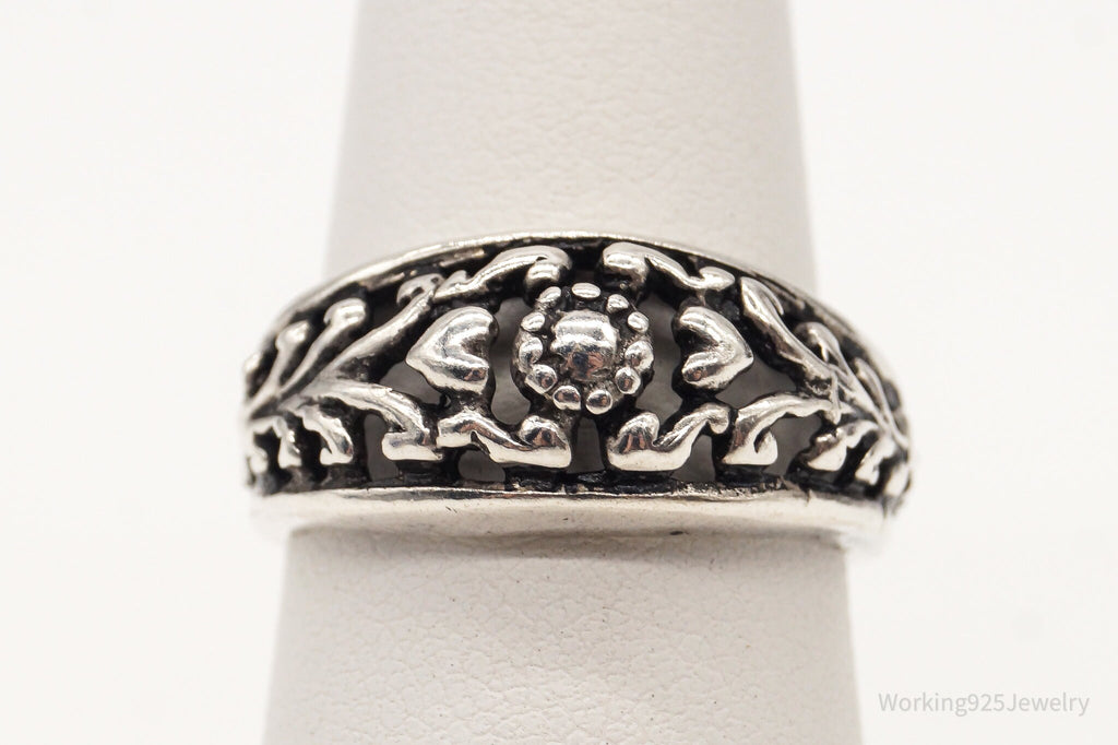 Vintage Hearts Filigree Bali Sterling Silver Band Ring - Size 6.75