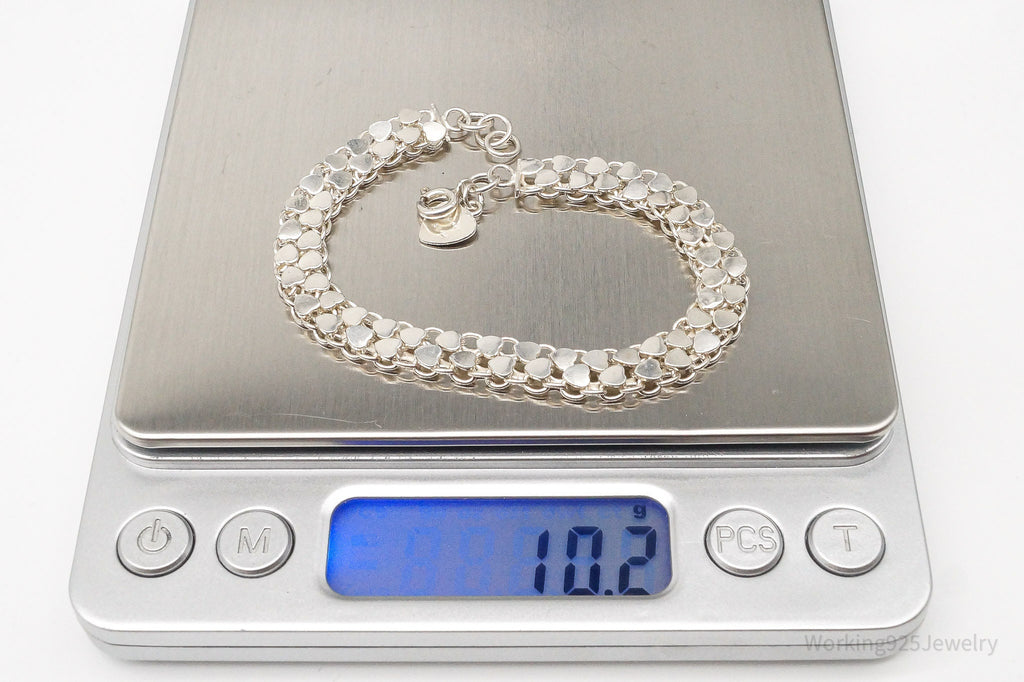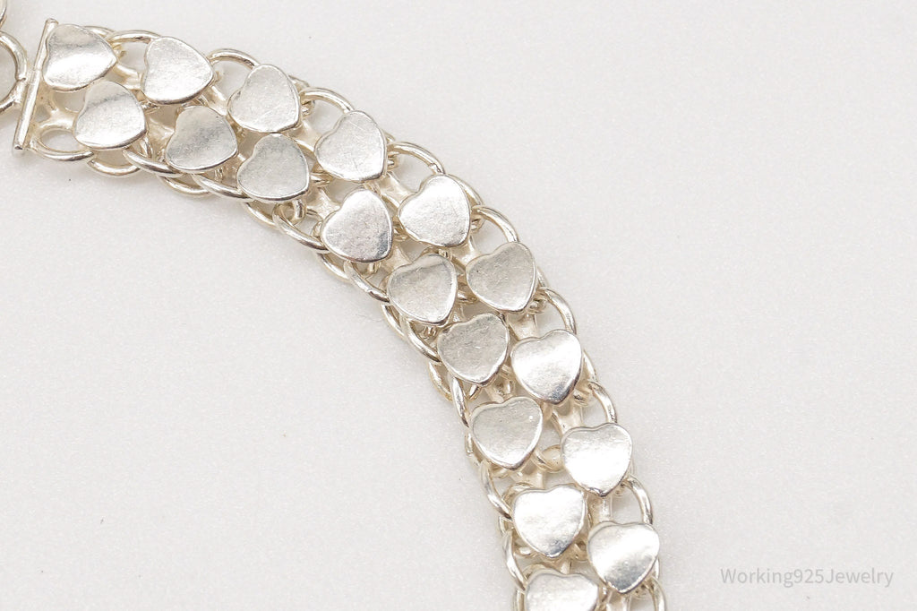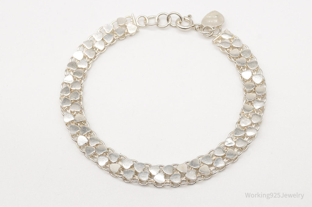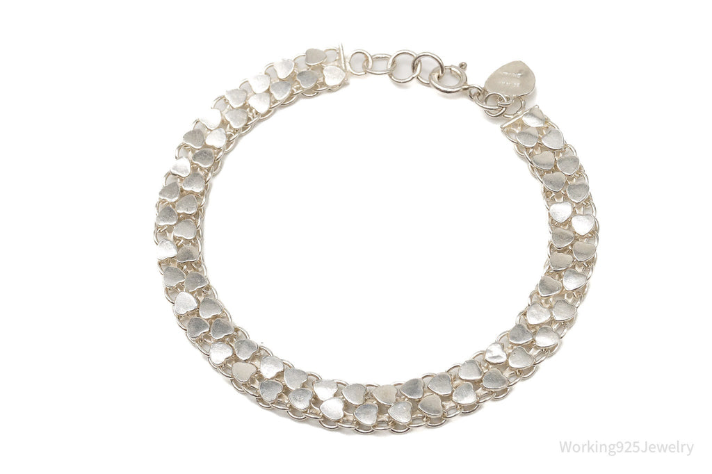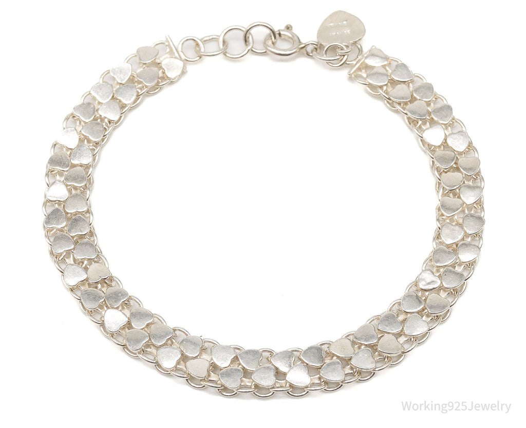 Vintage Hearts Mesh Chain Link Silver Bracelet
