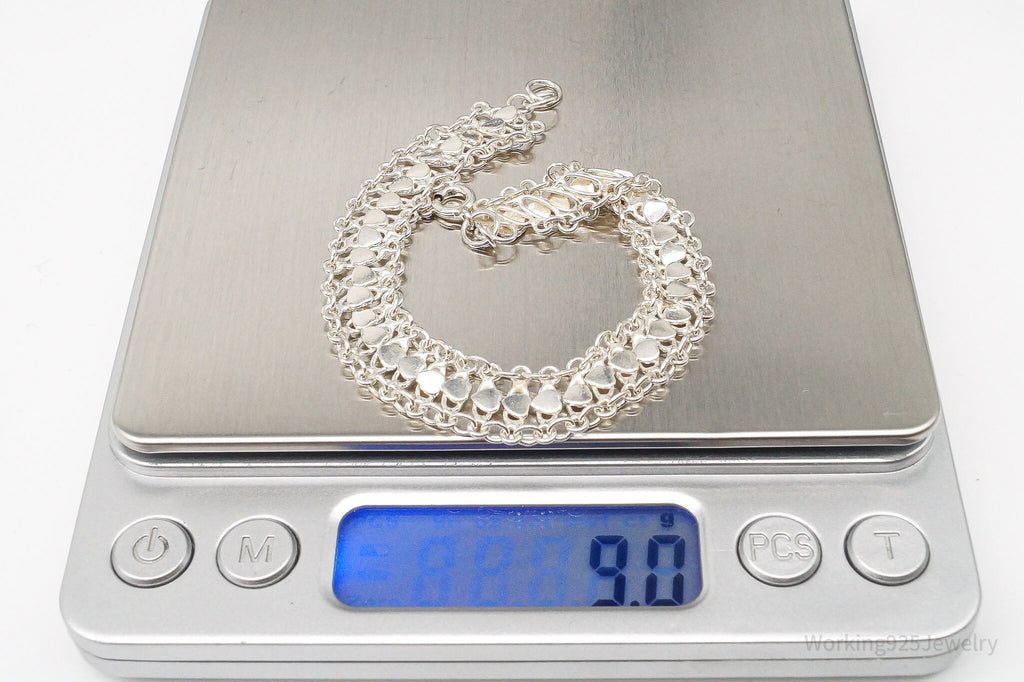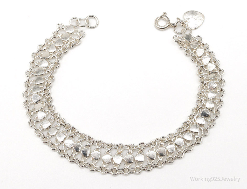 Vintage Hearts Mesh Chain Link Sterling Silver Bracelet