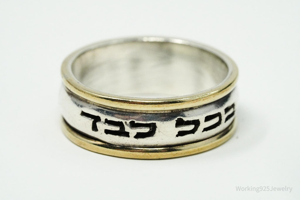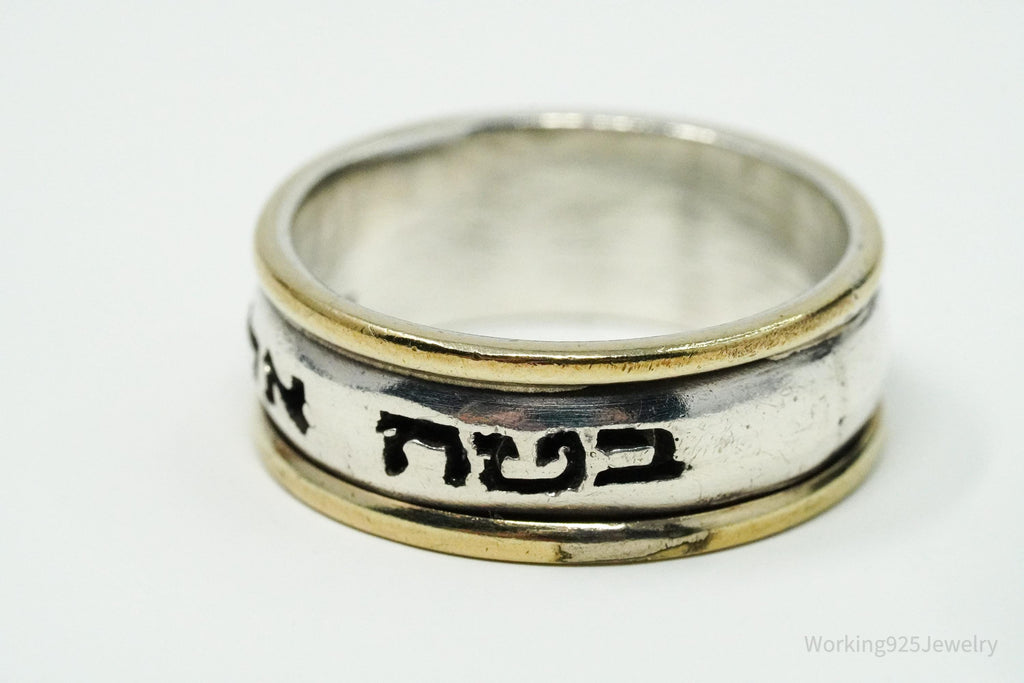 Vintage Hebrew Gold Vermeil Sterling Silver Band Ring - Size 9.75