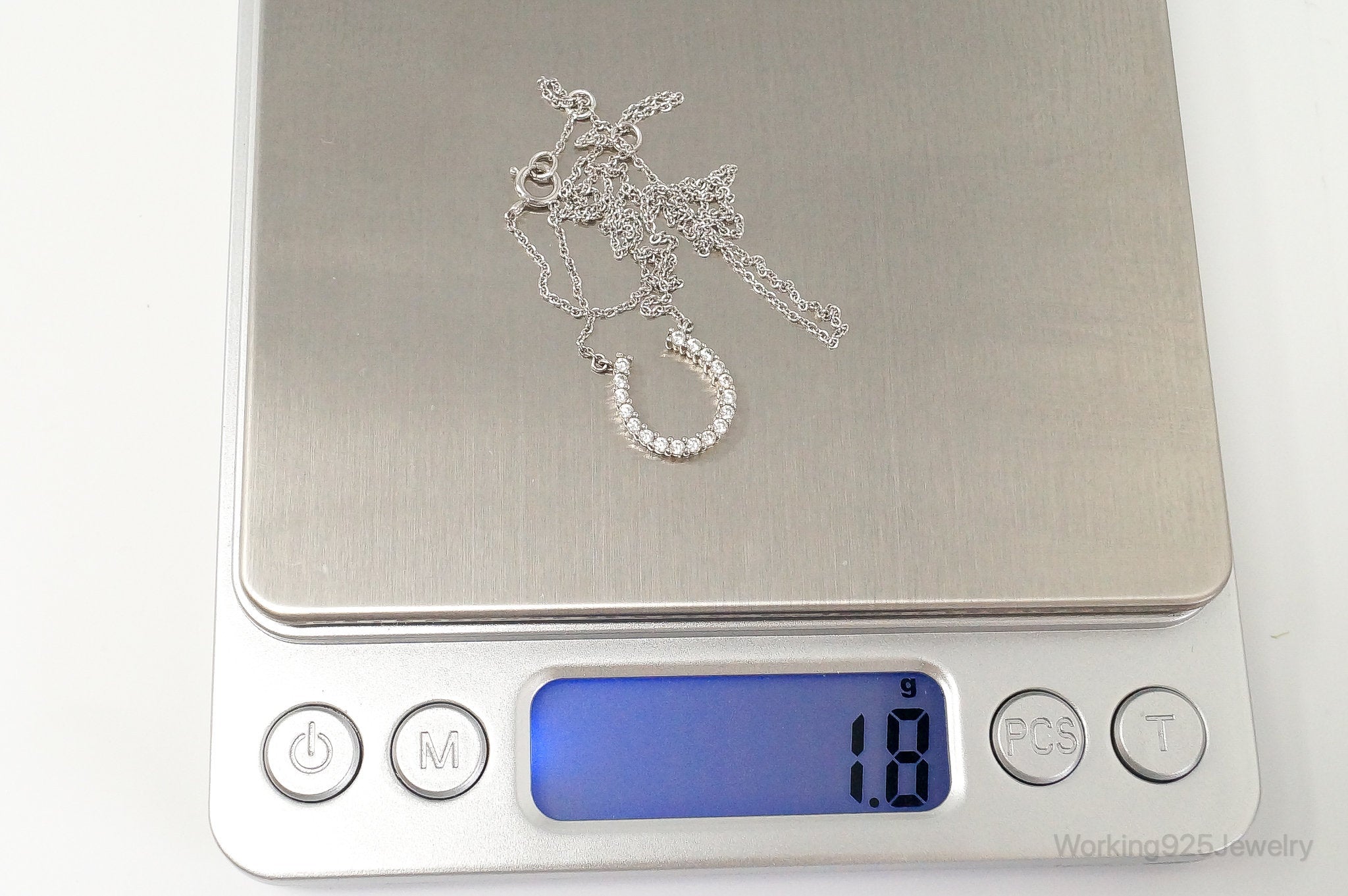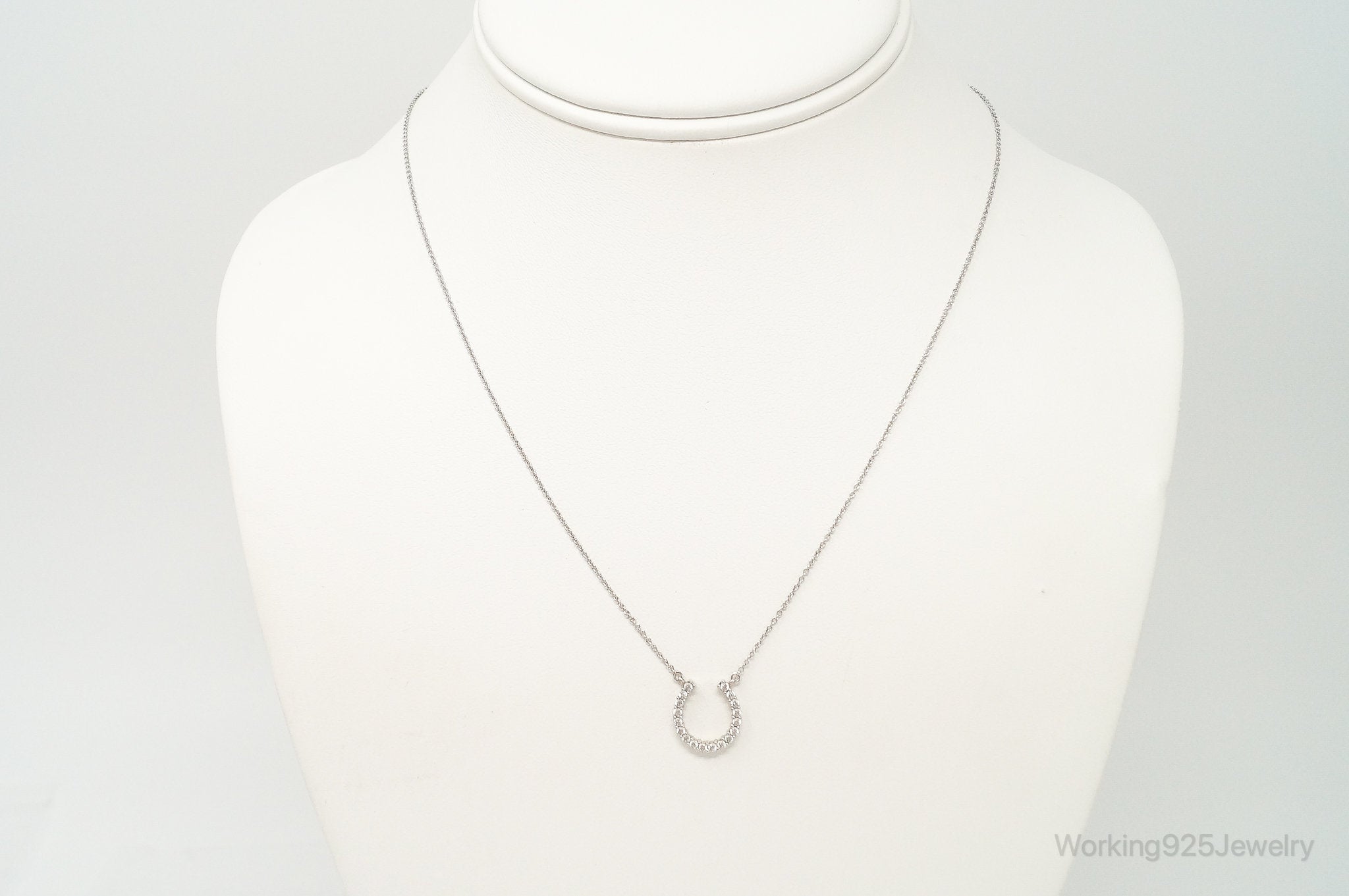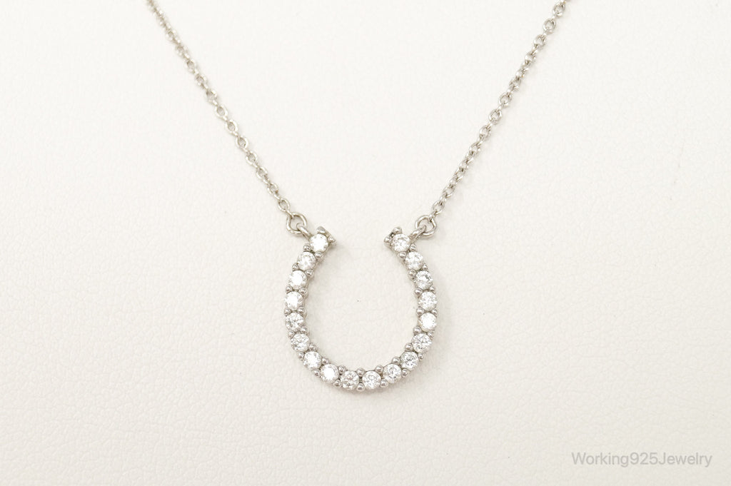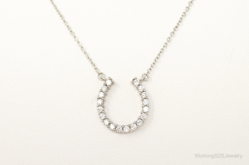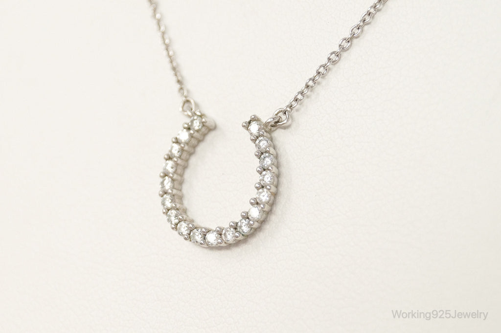 Vintage Horse Shoe Cubic Zirconia Sterling Silver Necklace