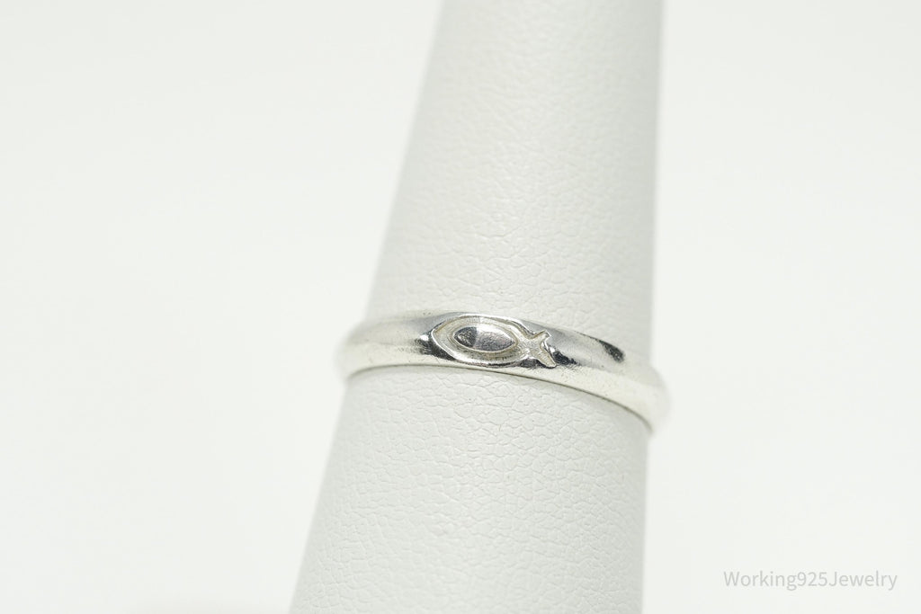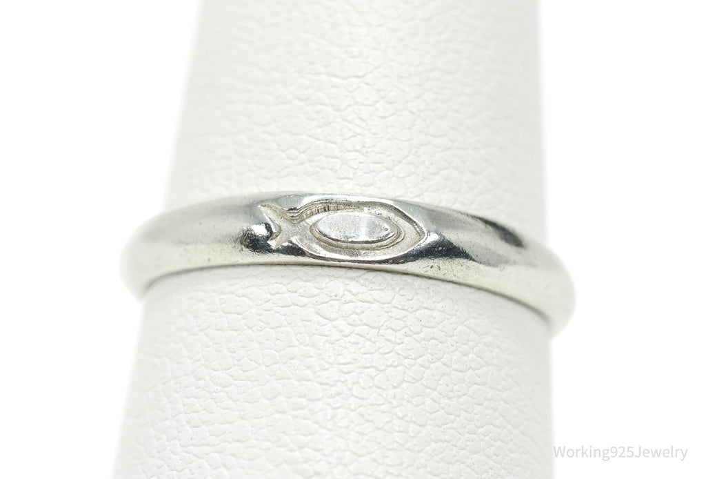 Vintage Ichthus Fish Sterling Silver Band Ring - Size 7.25