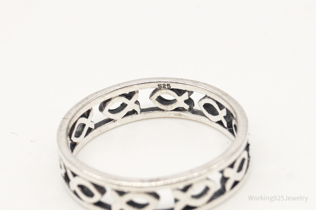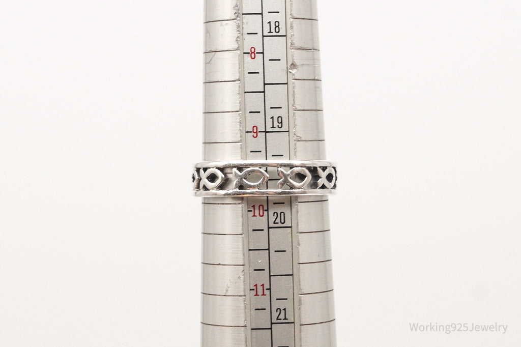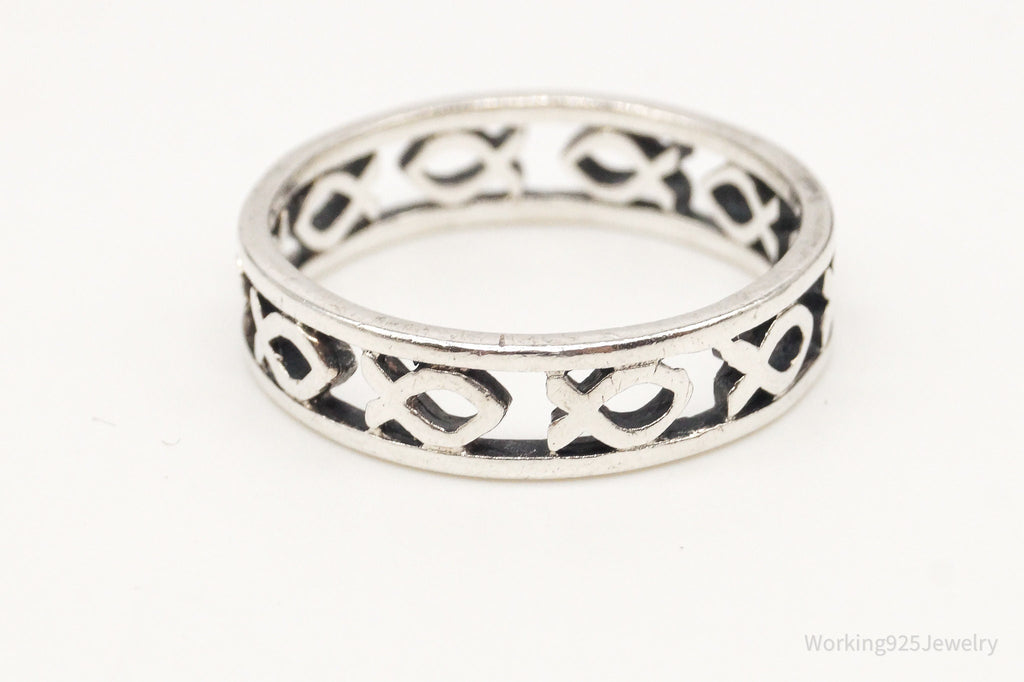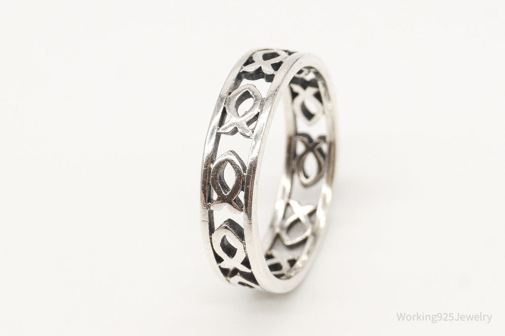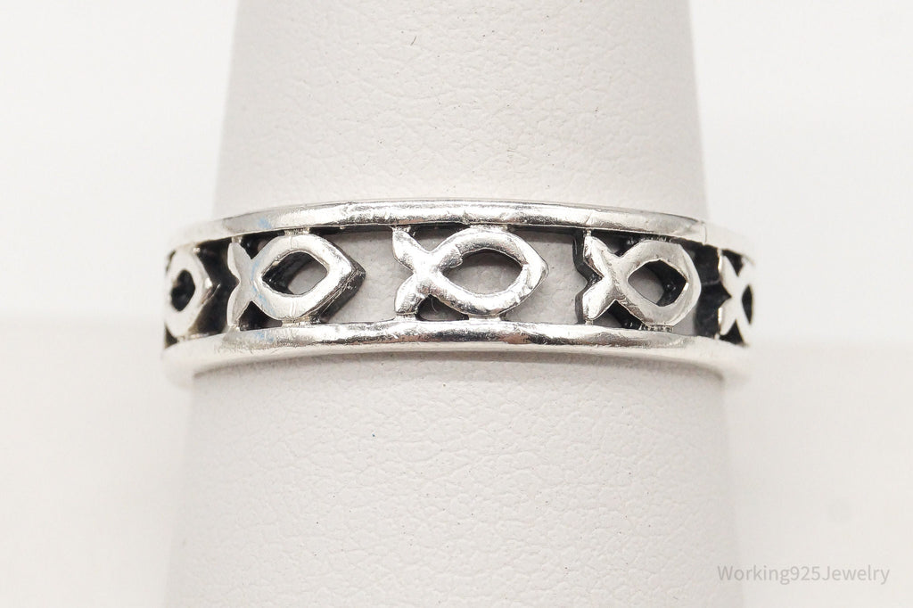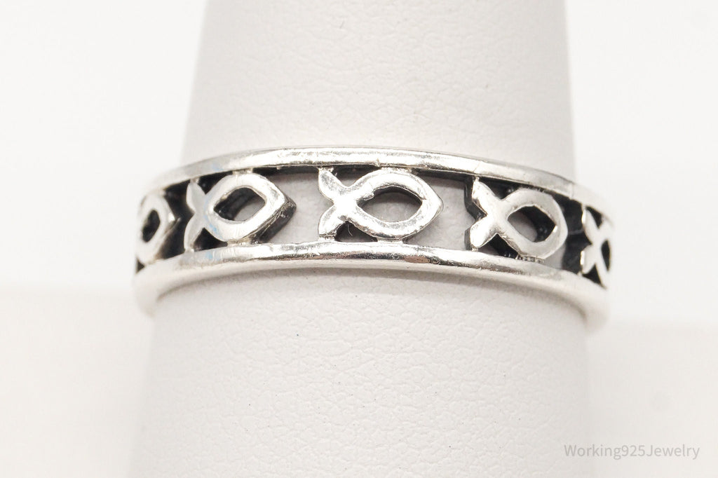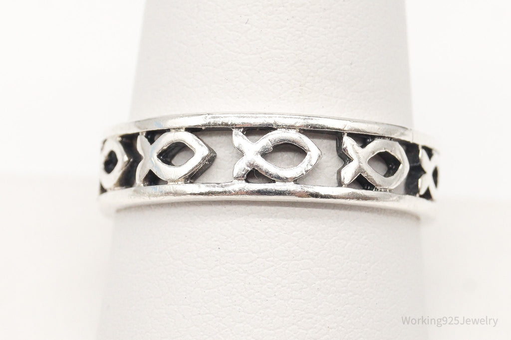 Vintage Ichthus Fish Sterling Silver Band Ring - Size 9.75