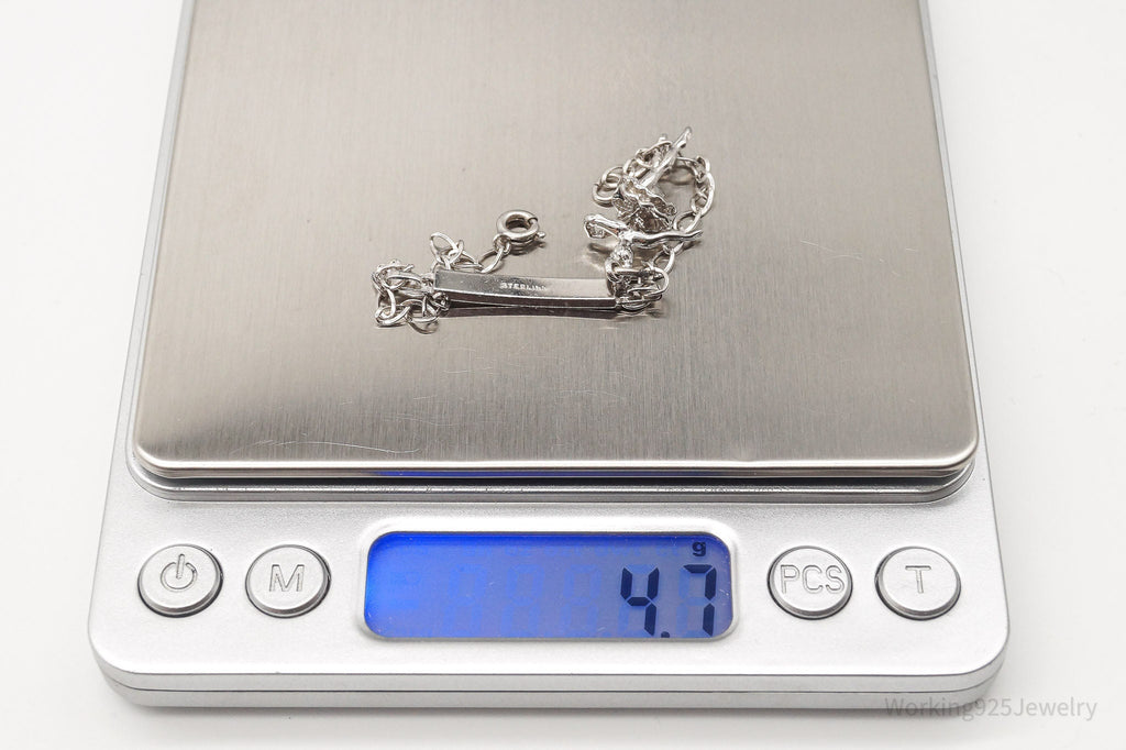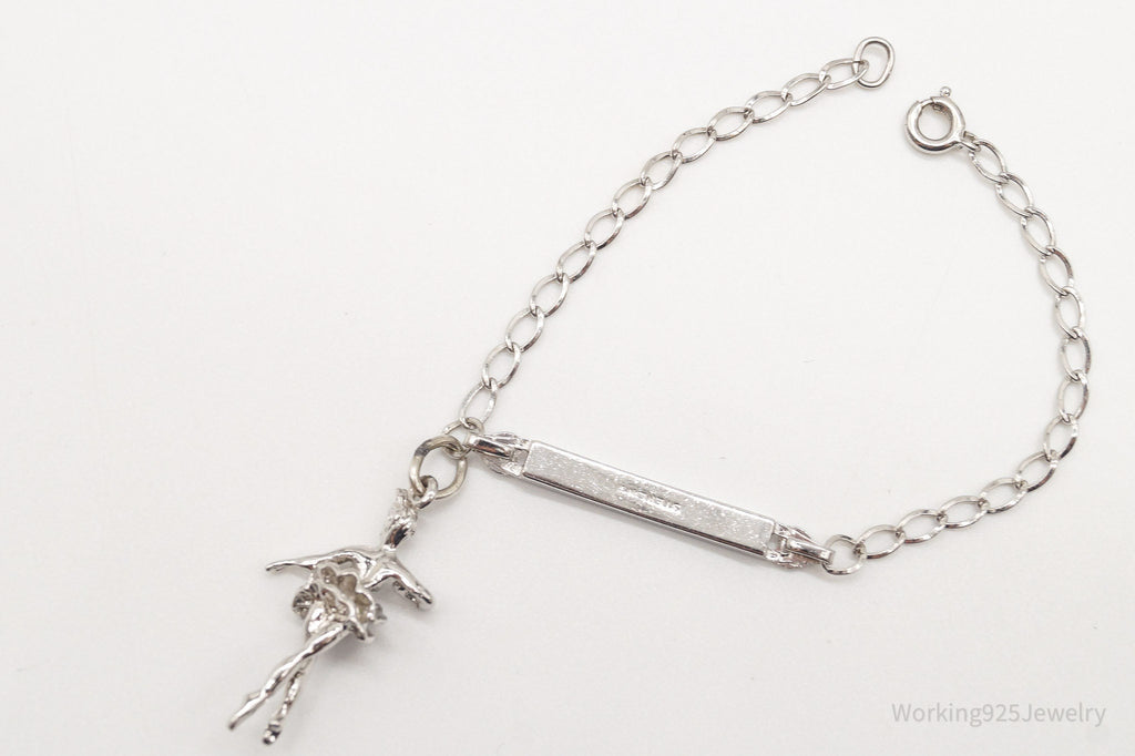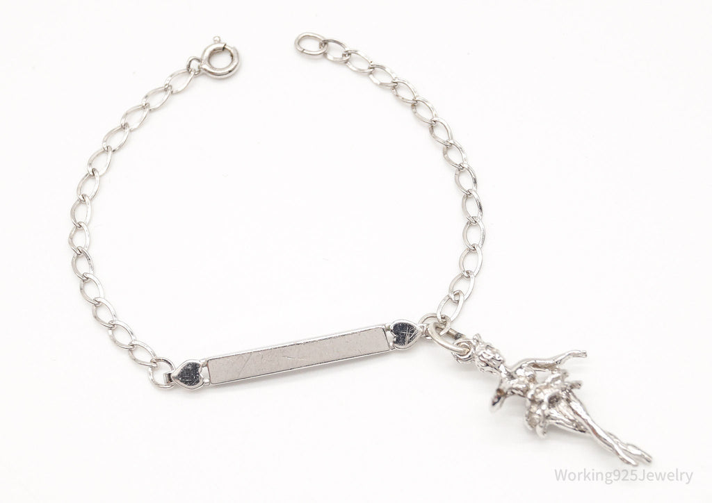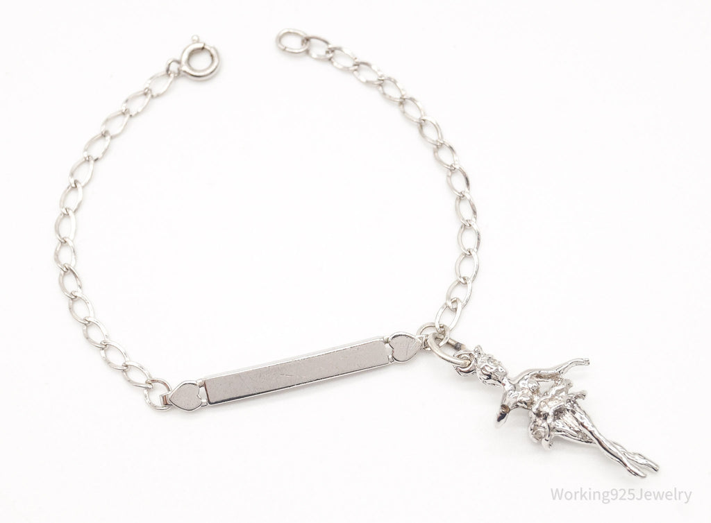 Vintage ID Name Bar Dancing Ballerina Charm Sterling Silver Chain Bracelet