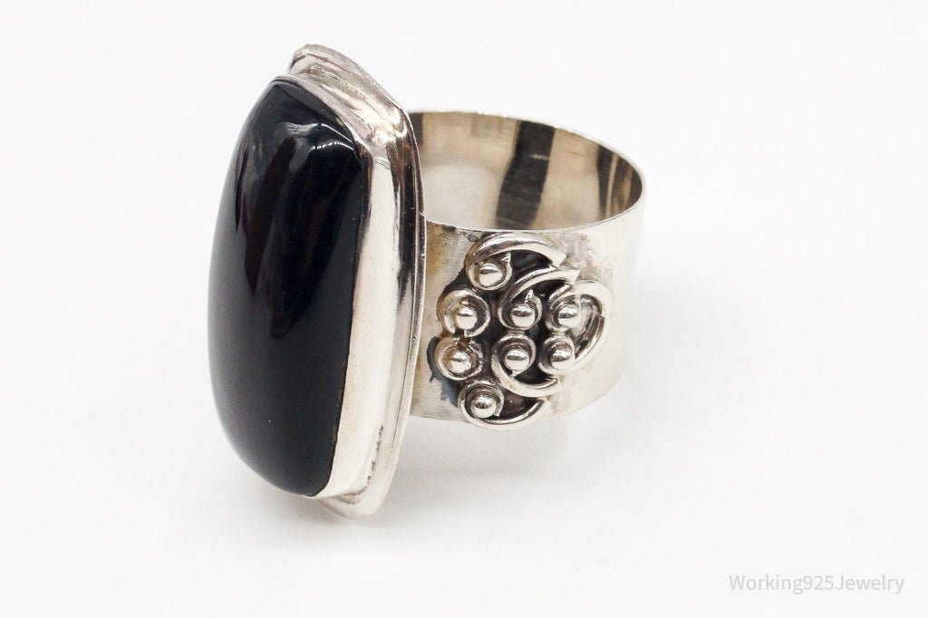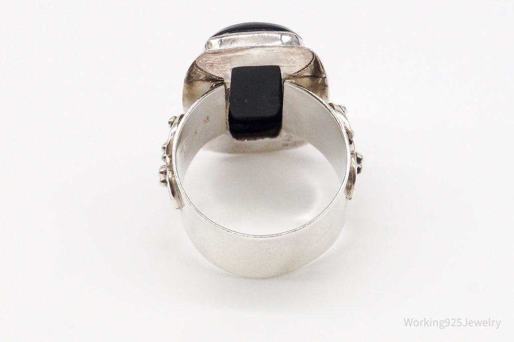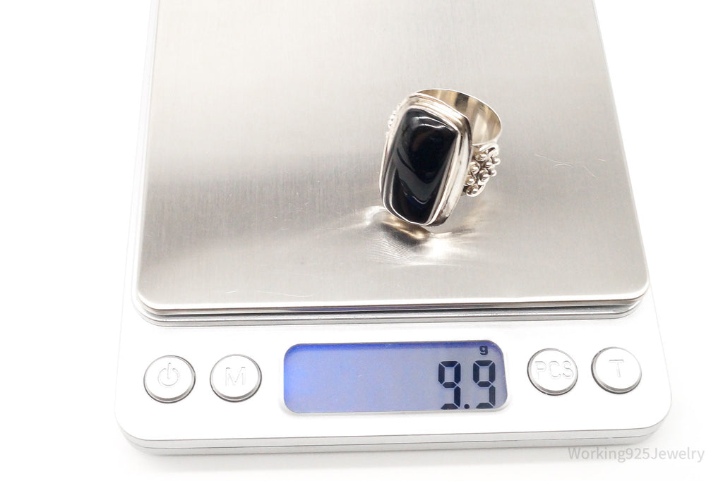 Vintage India Designer VS Black Onyx Sterling Silver Ring - Size 9.25