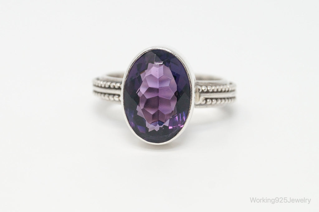 Vintage Indonesia Designer Talia Merav Amethyst Sterling Silver Ring - Sz 9