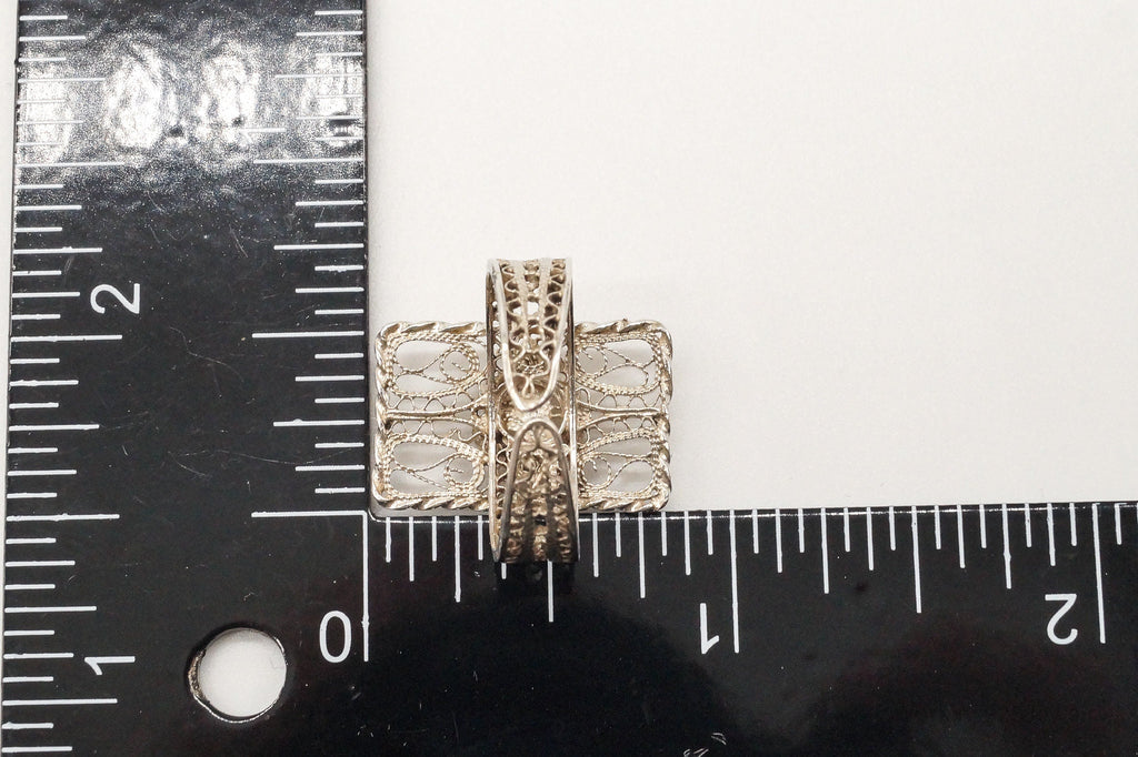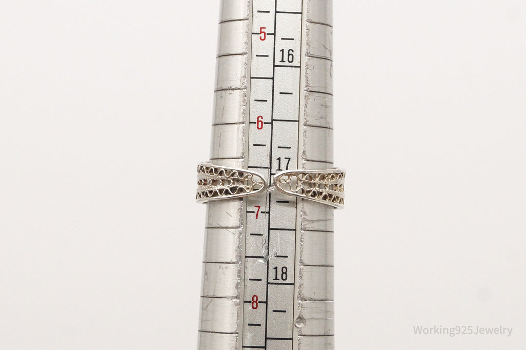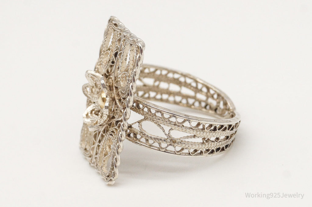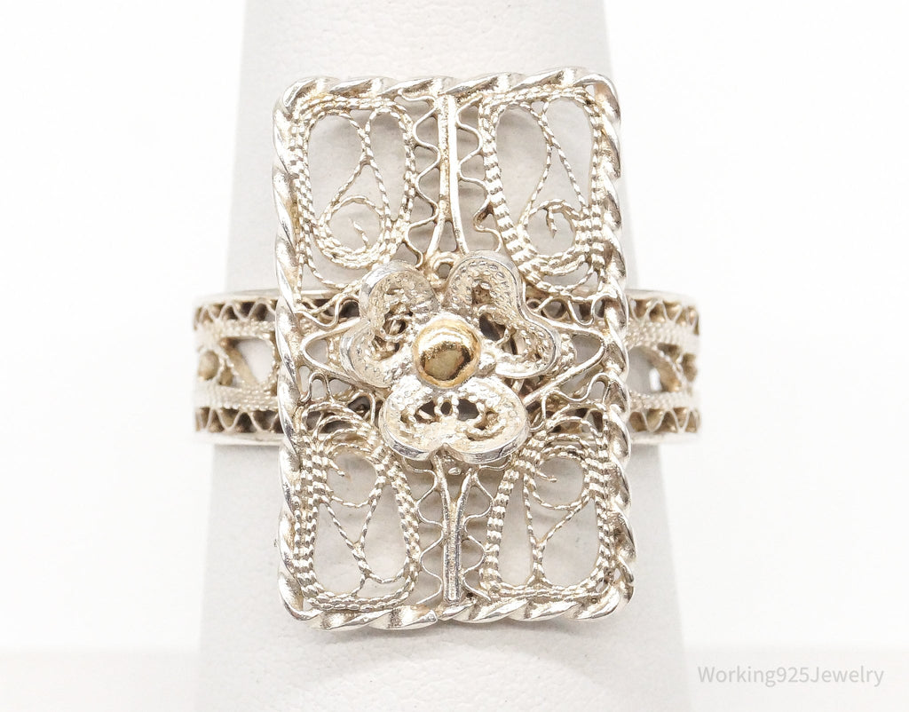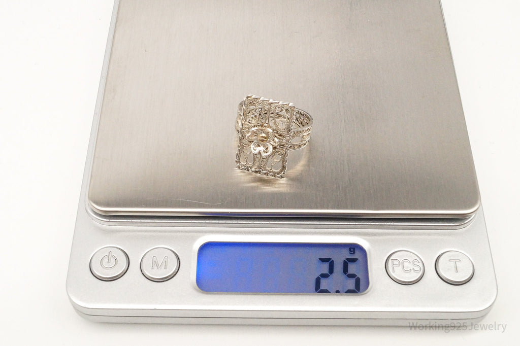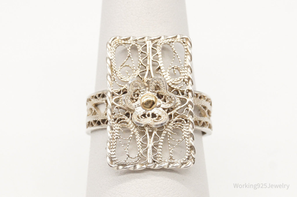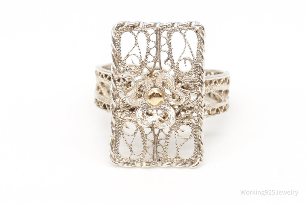 Vintage Intricate Filigree Gold Vermeil Dot Silver Ring - Size 6.75 Adjustable