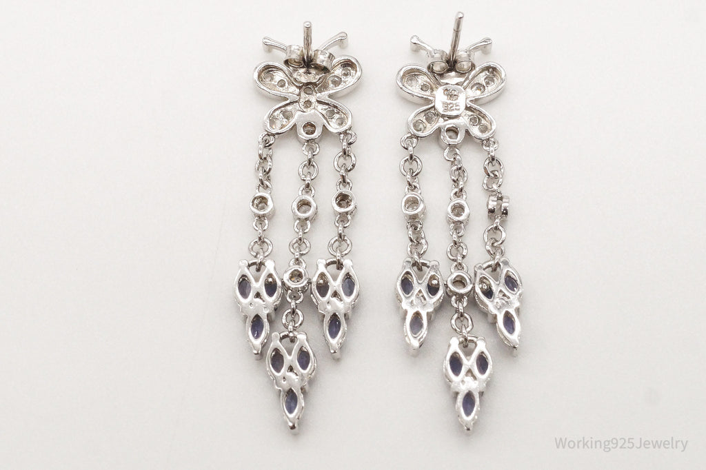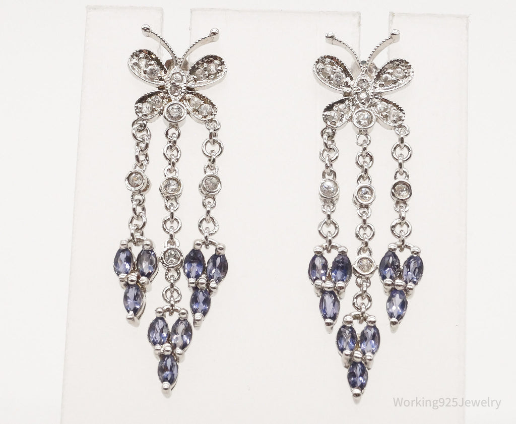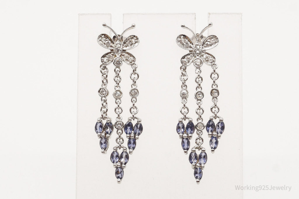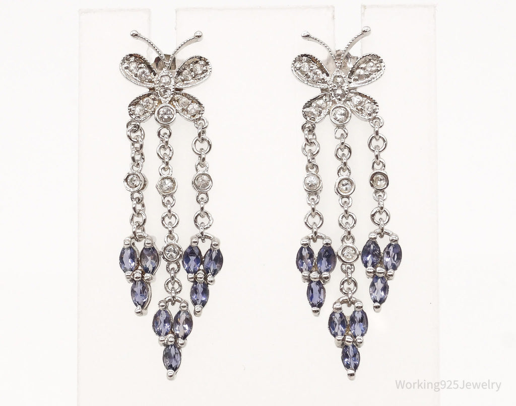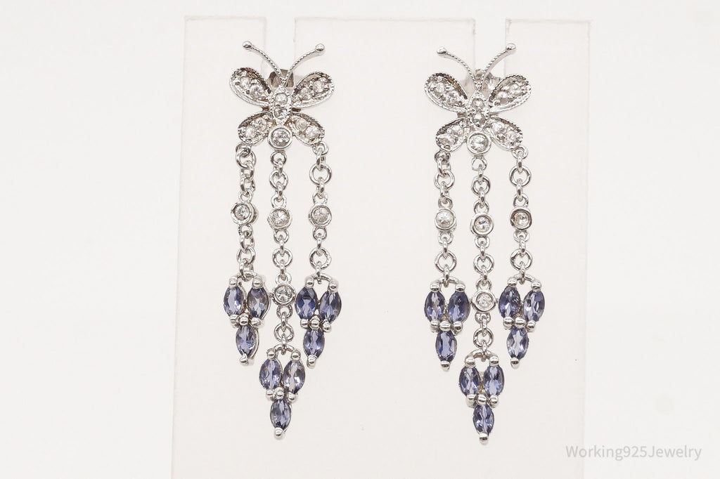 Vintage Iolite Cubic Zirconia Butterfly Sterling Silver Earrings