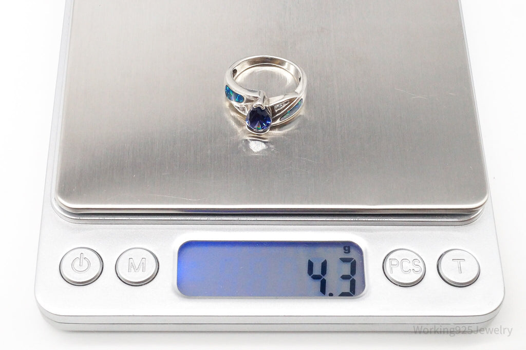 Vintage Iolite Cubic Zirconia Opal Silver Ring Size 5.25