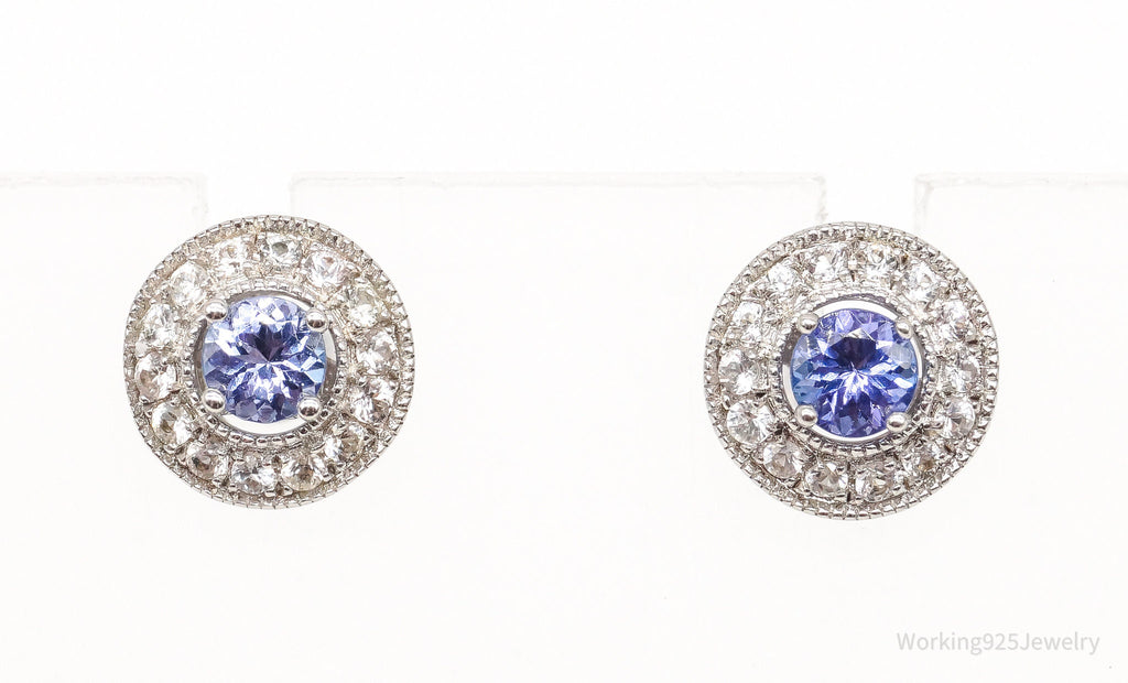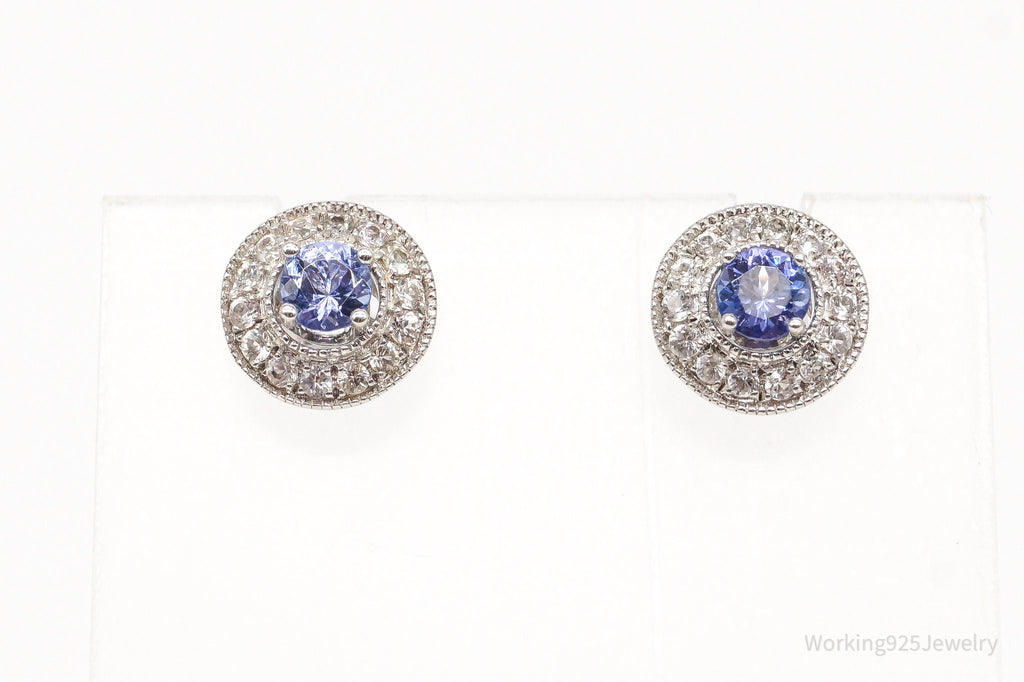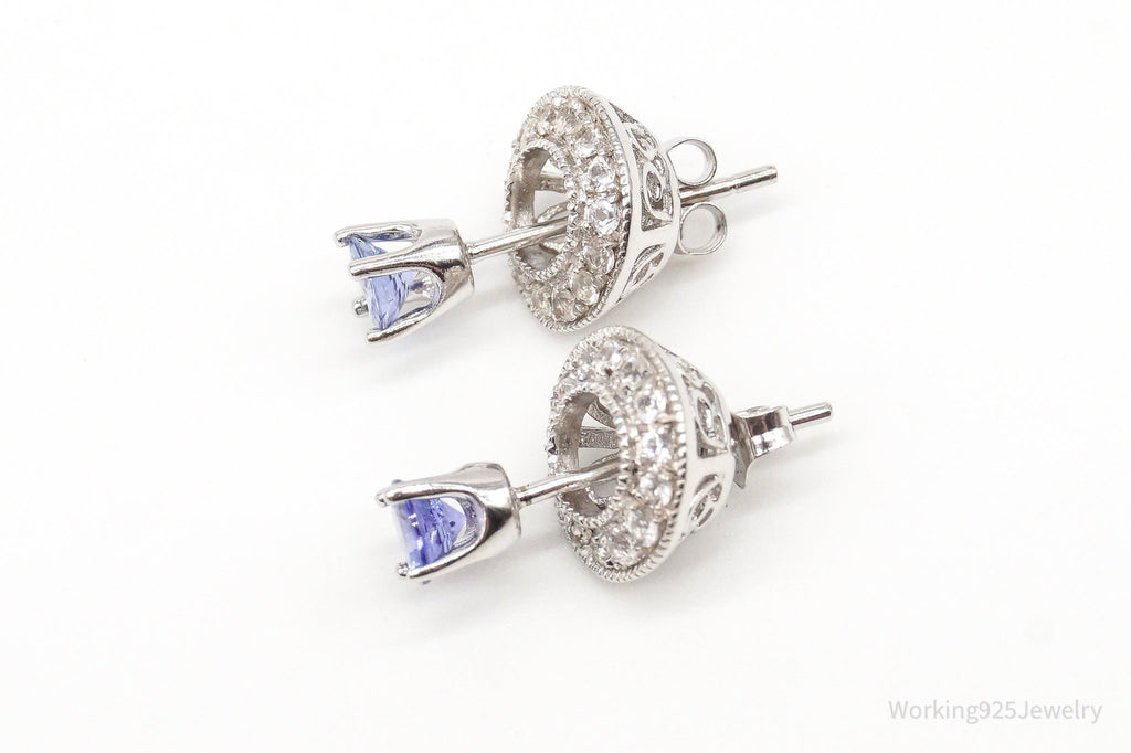 Vintage Iolite Cubic Zirconia Sterling Silver Earrings