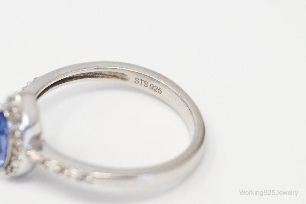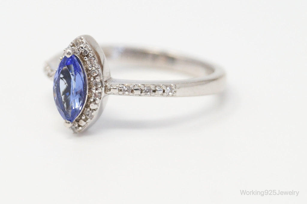Vintage Iolite Cubic Zirconia Sterling Silver Ring Size 7