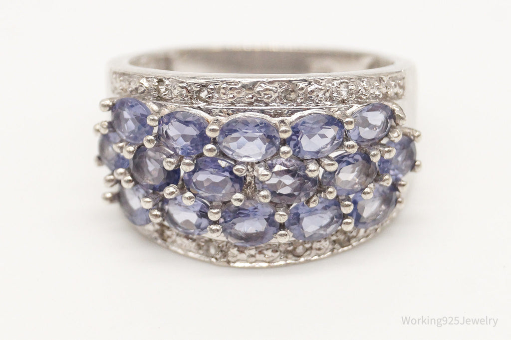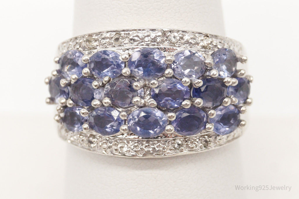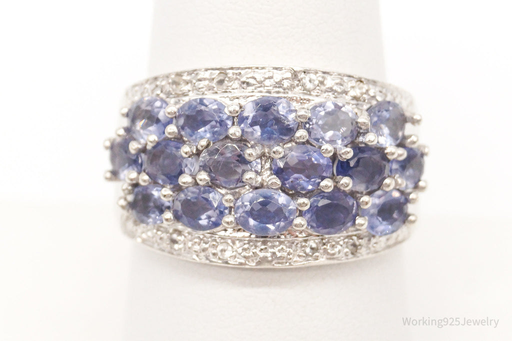 Vintage Iolite Cubic Zirconia Sterling Silver Ring Size 8.25