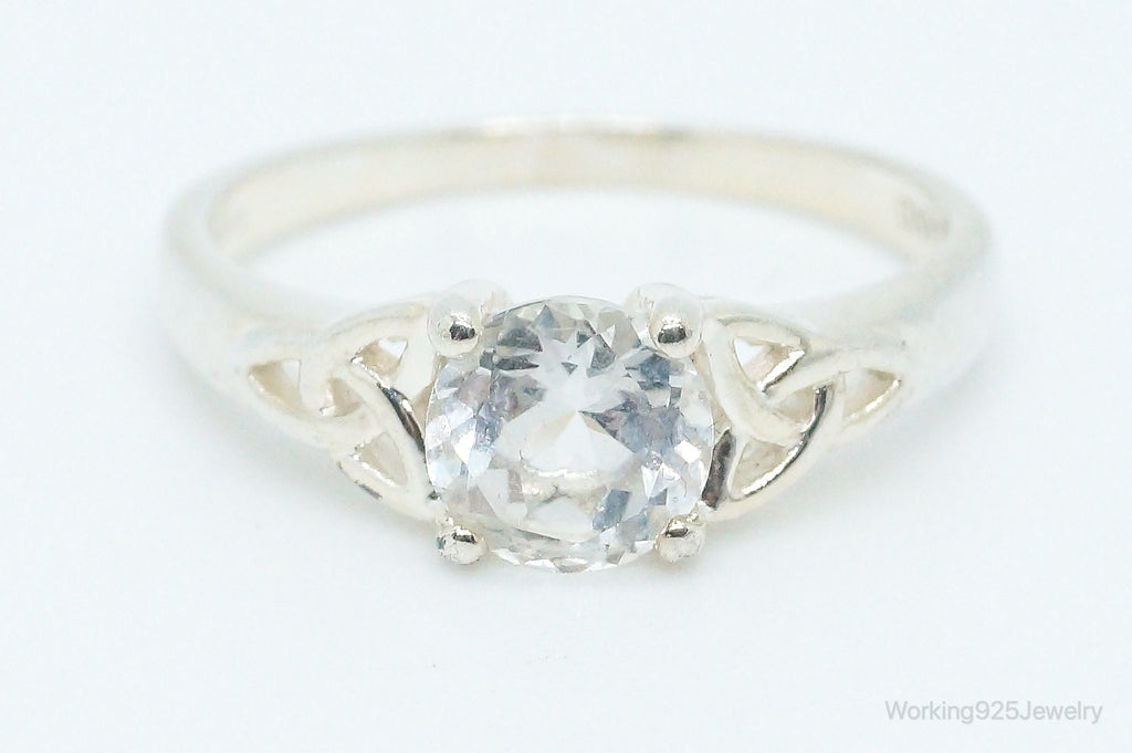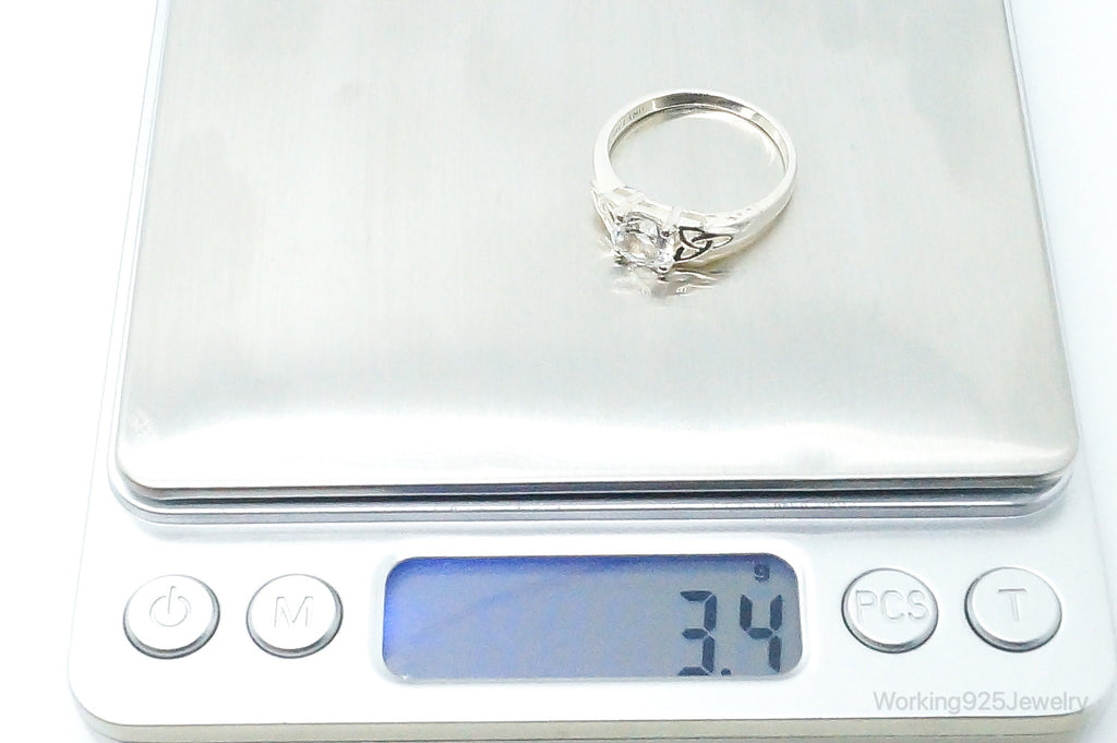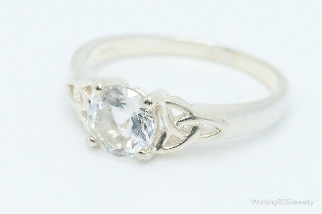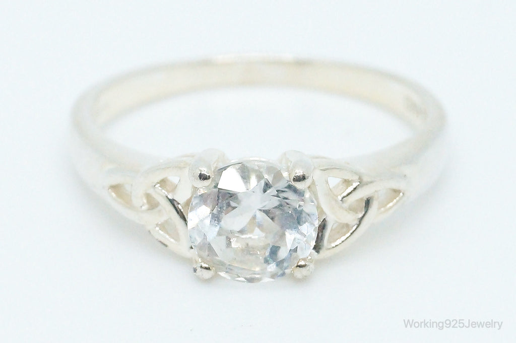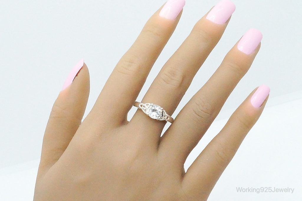 Vintage Irish Knots Cubic Zirconia Sterling Silver Ring - Size 10