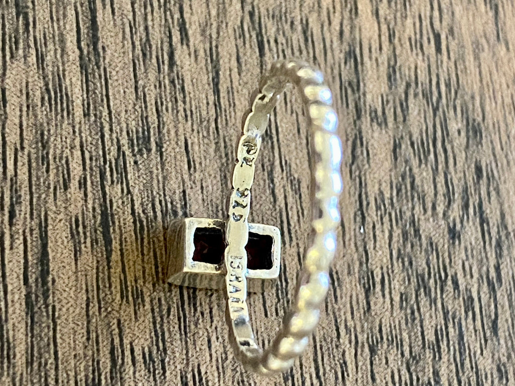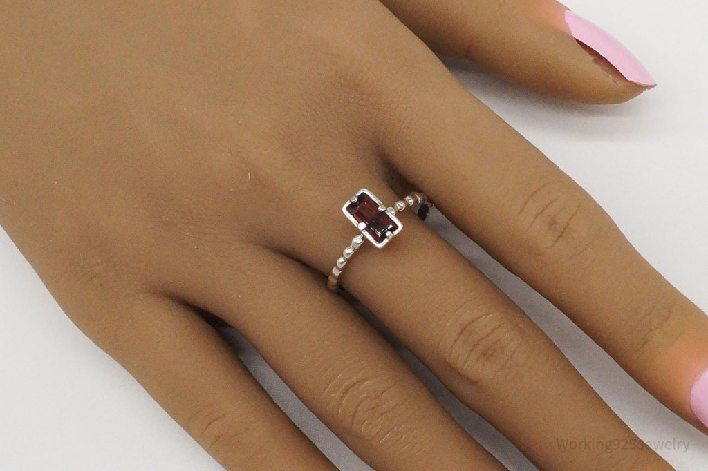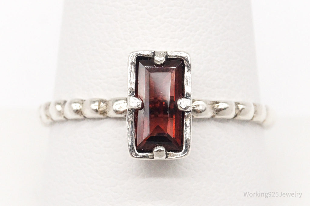 Vintage Israel Designer Paz PZ Garnet Sterling Silver Ring - Size 10.25