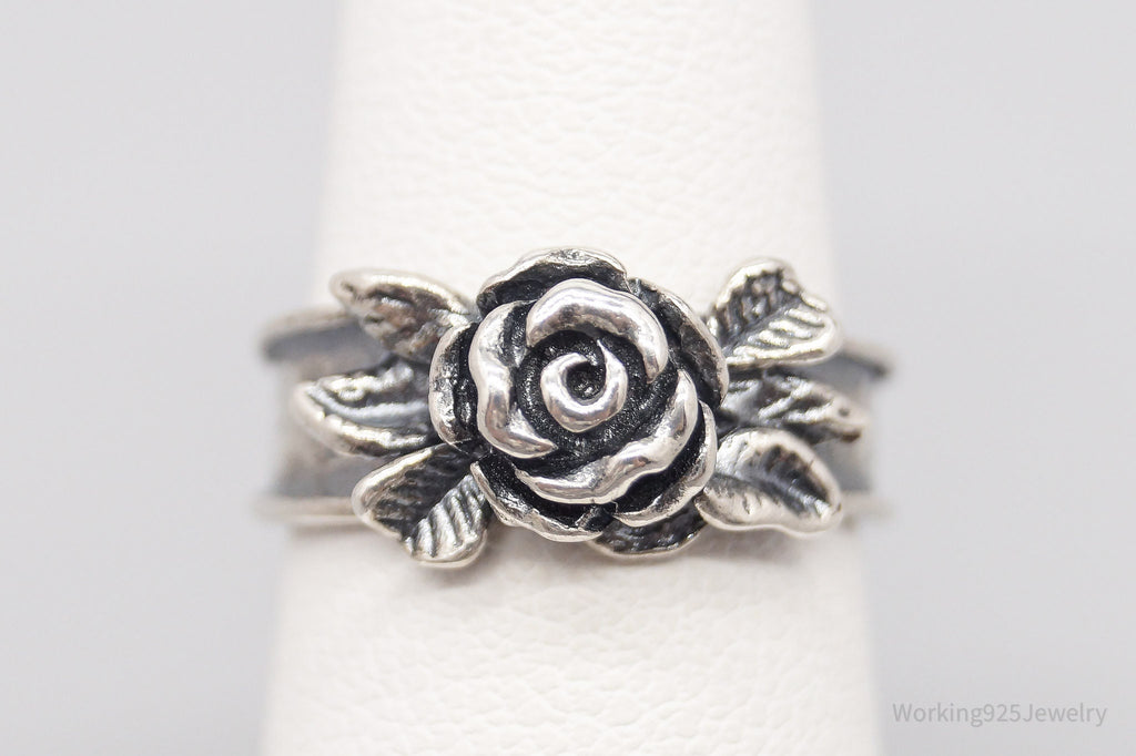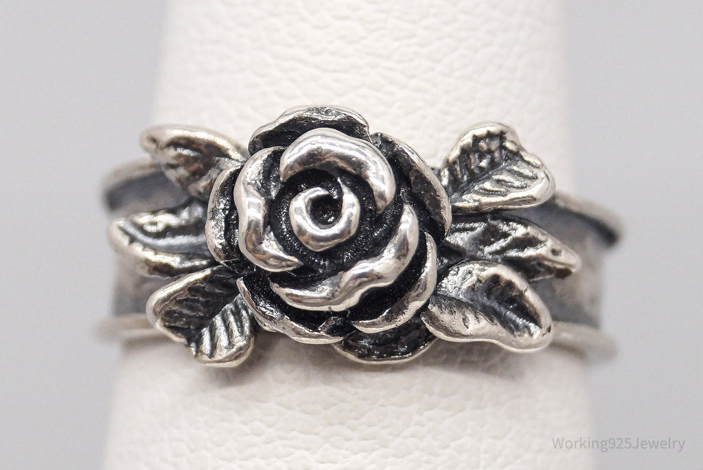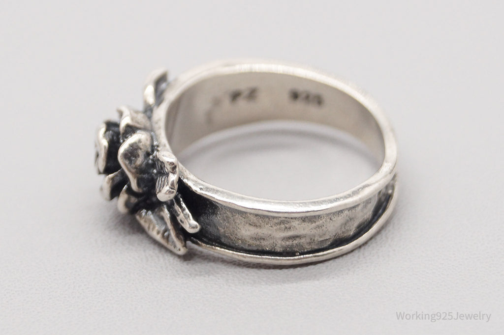 Vintage Israel Designer Paz PZ Rose Sterling Silver Band Ring - Size 5