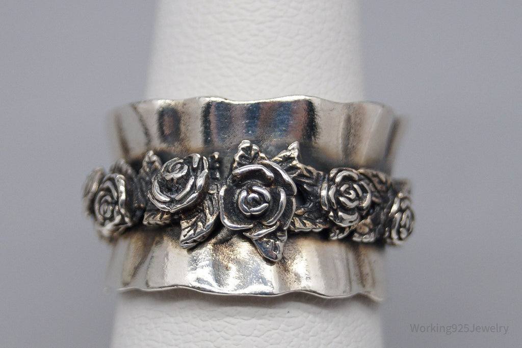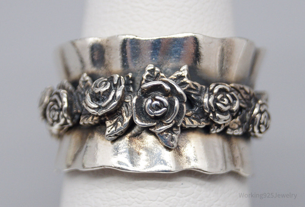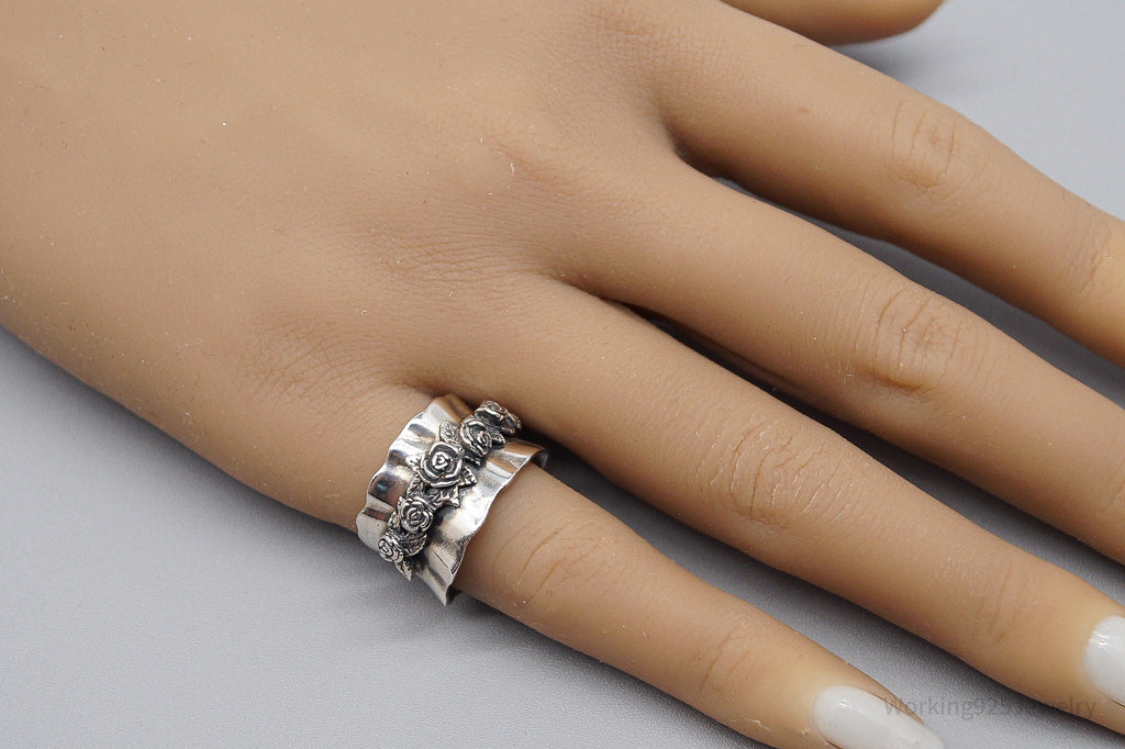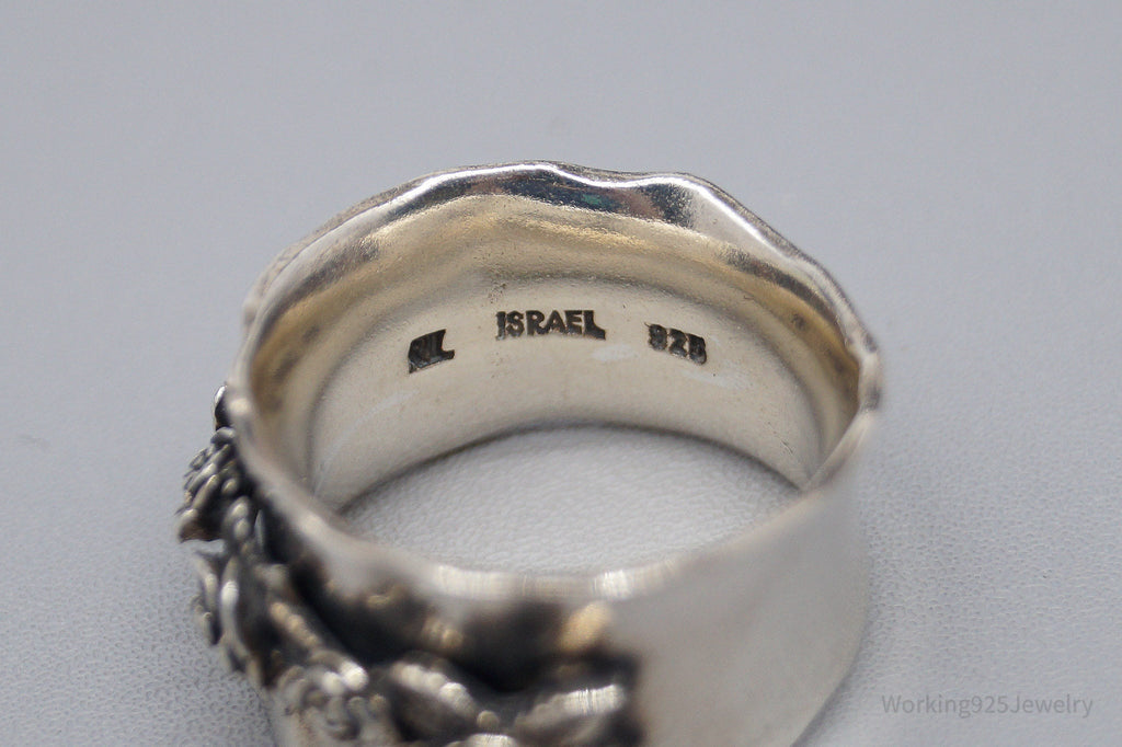 Vintage Israel Designer RL Sterling Silver Roses Band Ring - Size 5.75