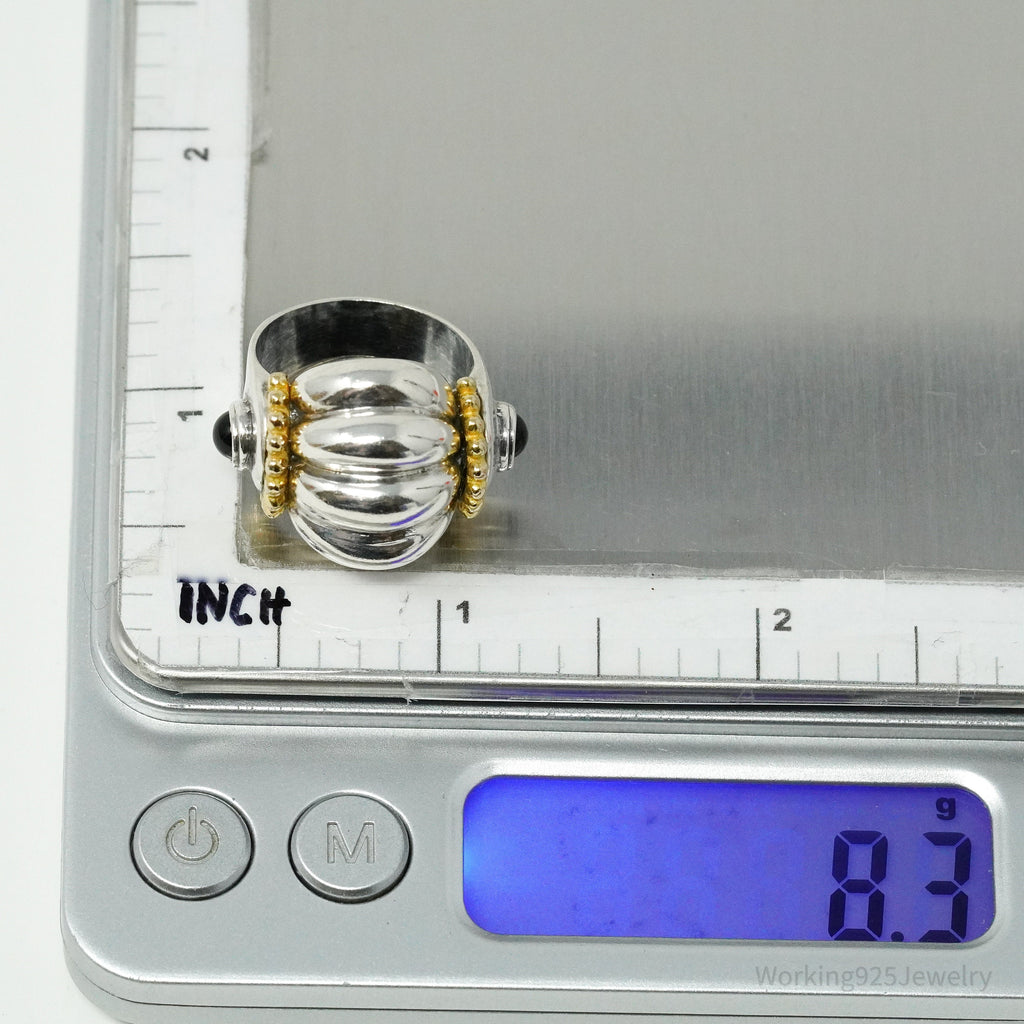 Vintage Italian Black Onyx Gold Vermeil Sterling Silver Ring - Size 6.5