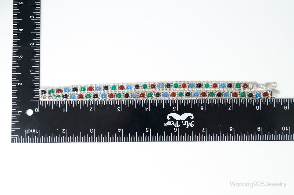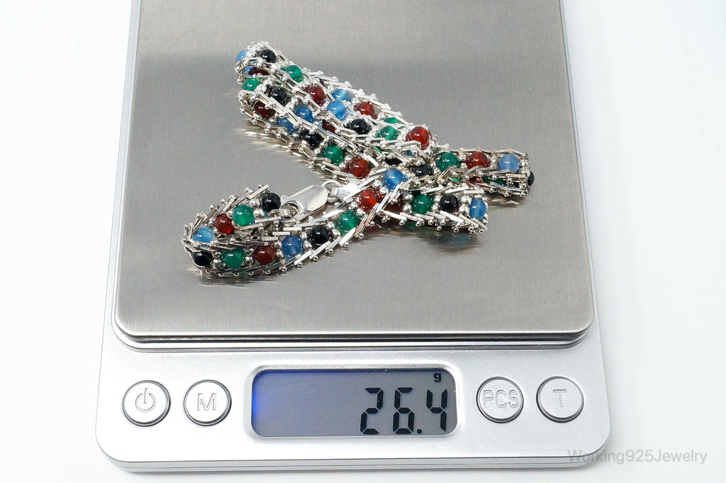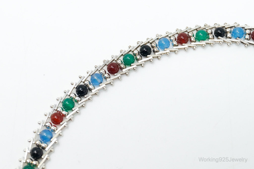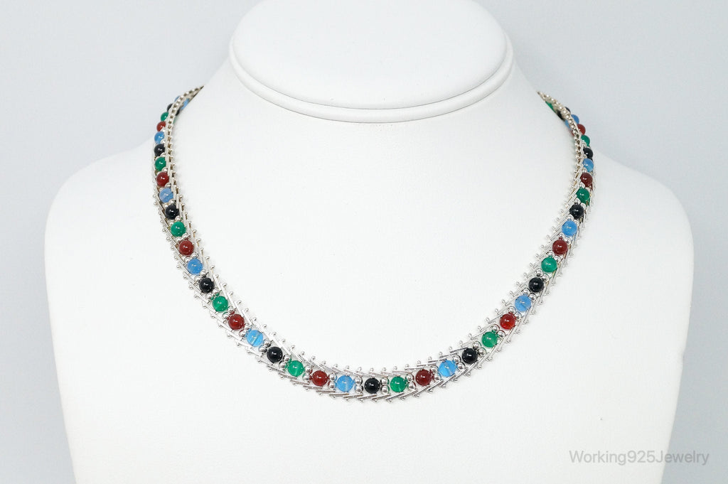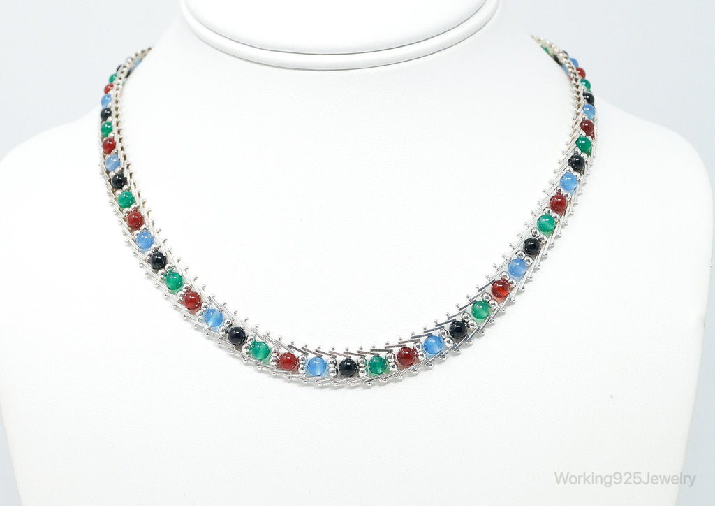 Vintage Italian Designer Milor Multi Stone Bead Sterling Silver Necklace