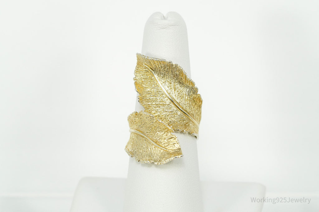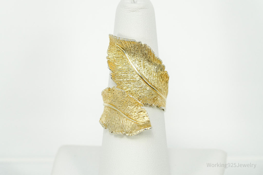 Vintage Italian Dyadema 18K Yellow Gold Plated Figural Leaf Sterling Silver Ring - Size 7