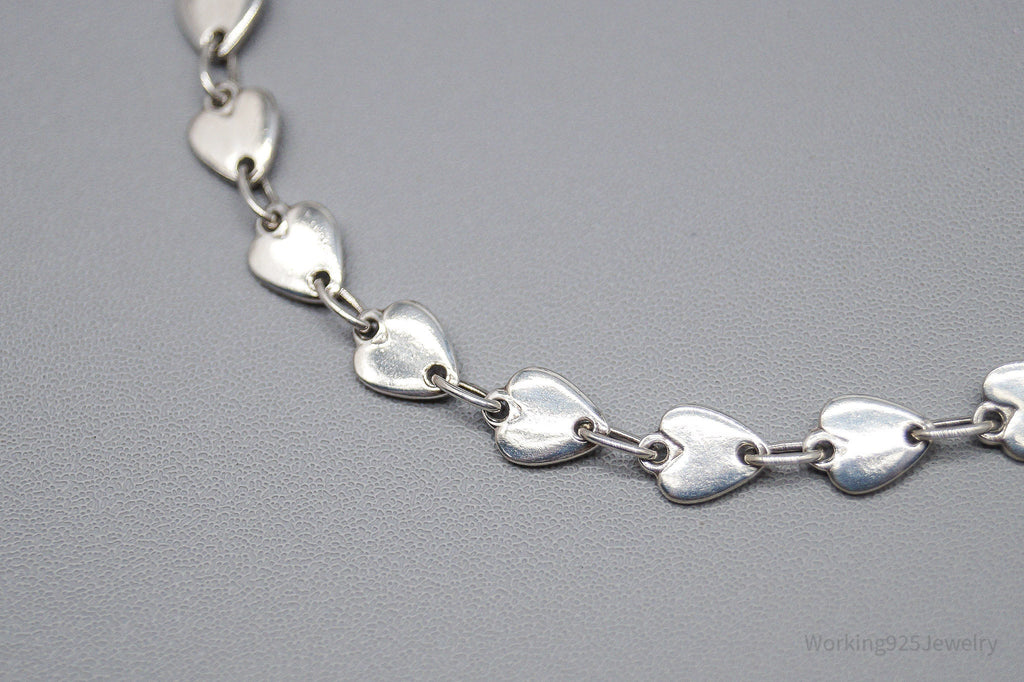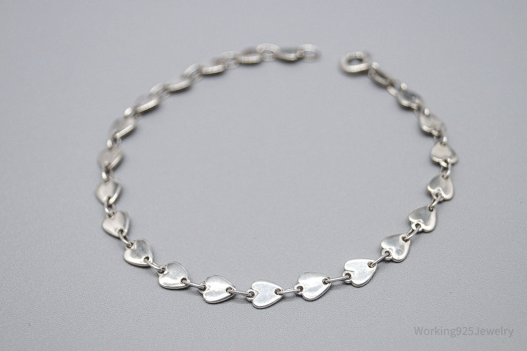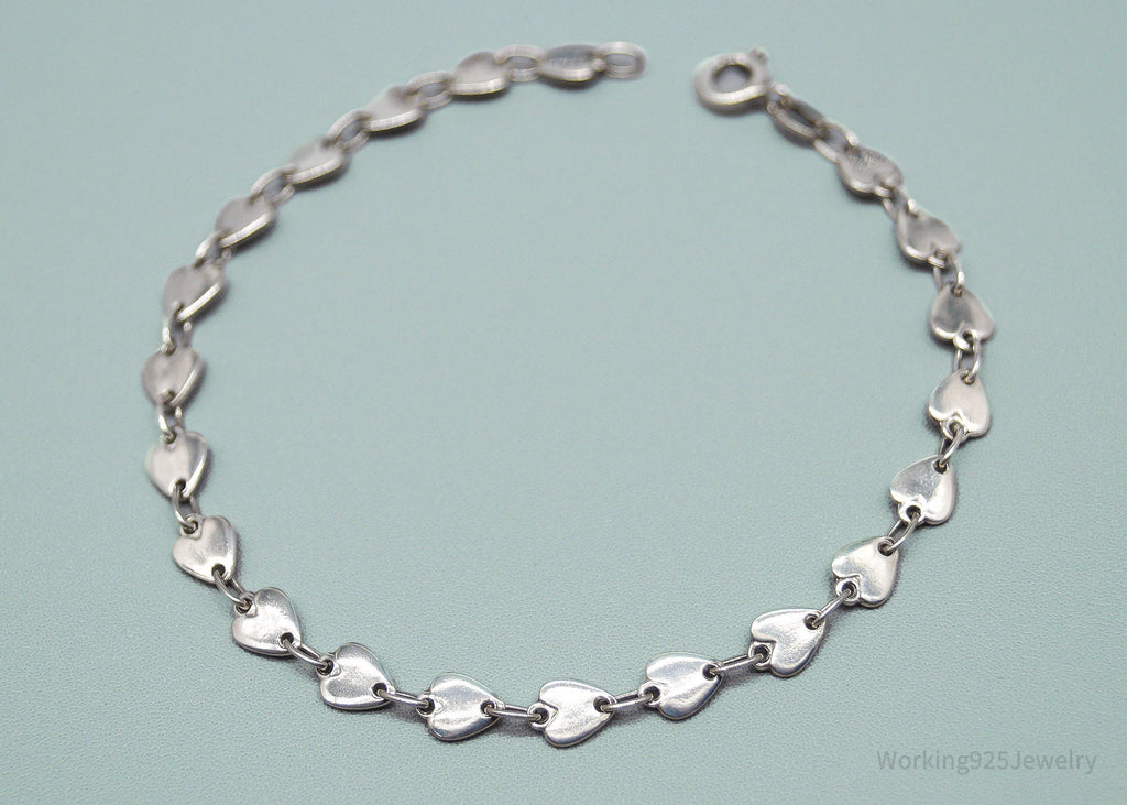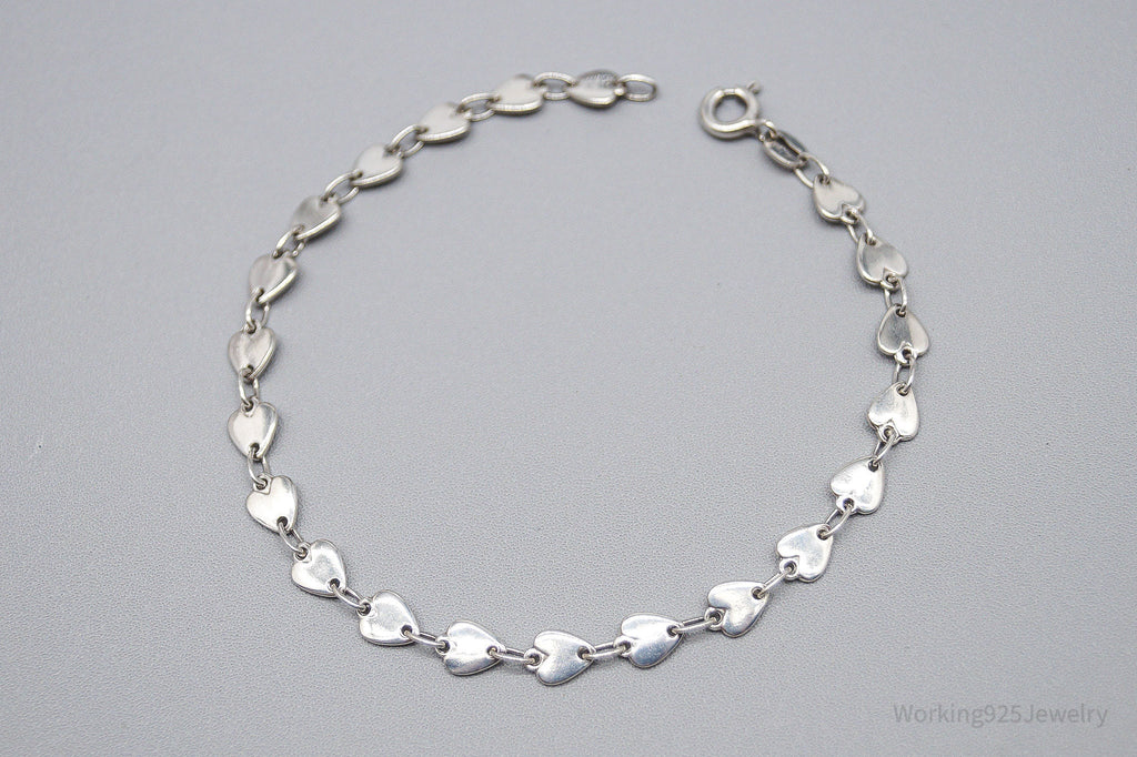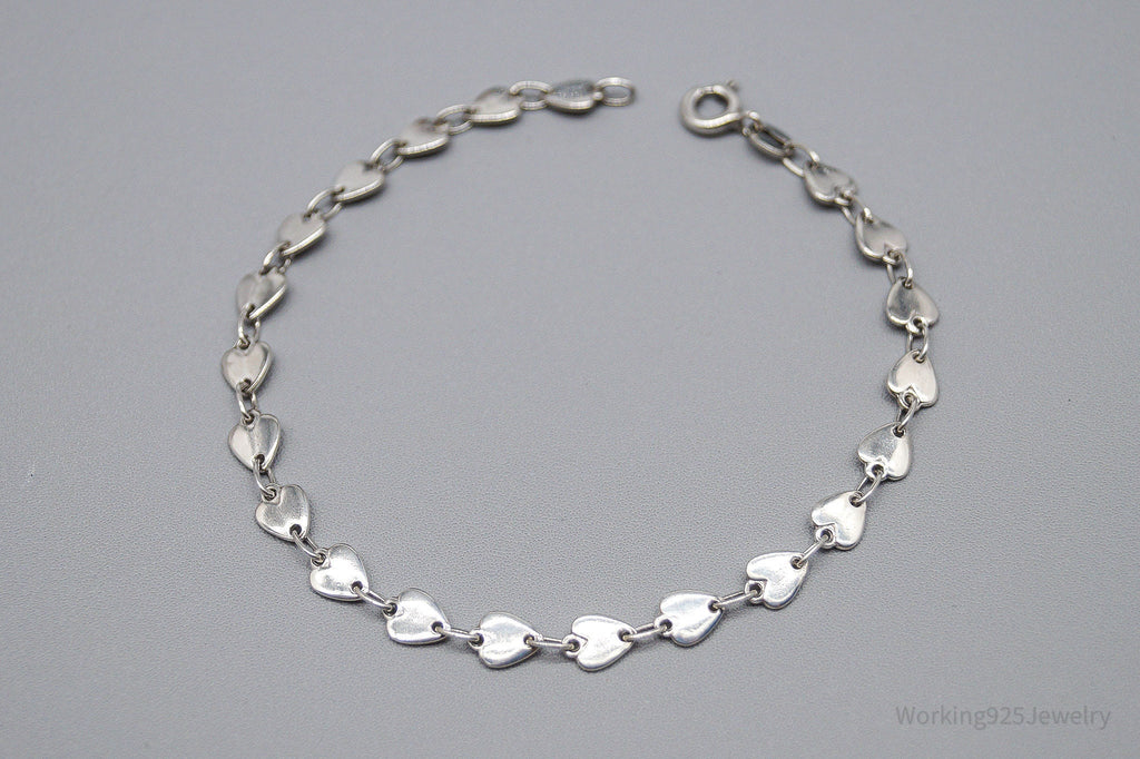 Vintage Italian Linked Hearts Sterling Silver Bracelet 7 1/8"