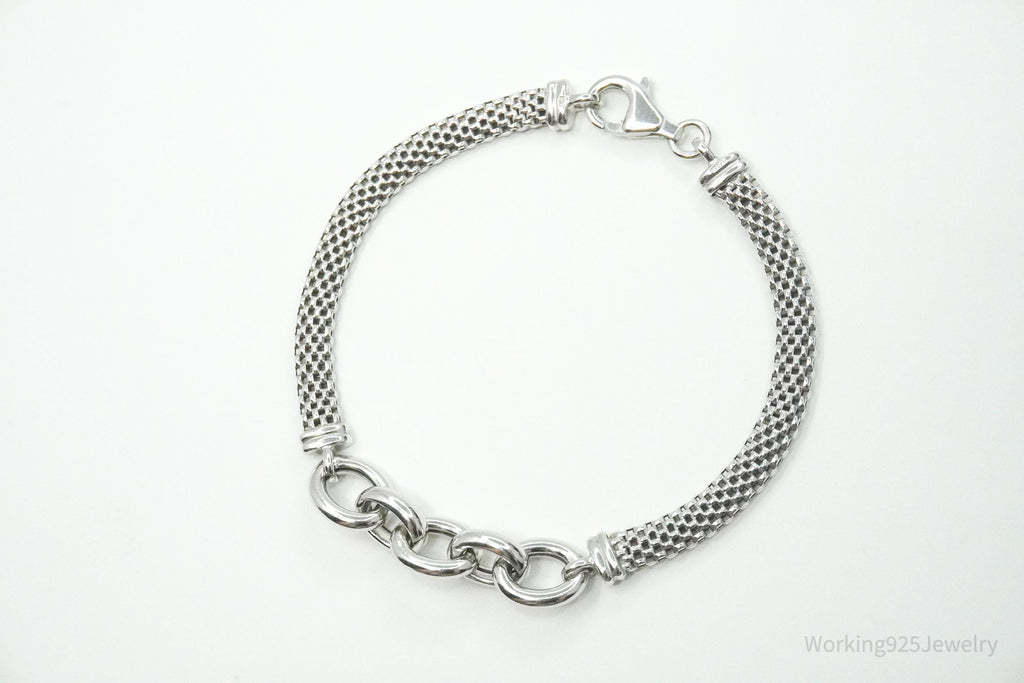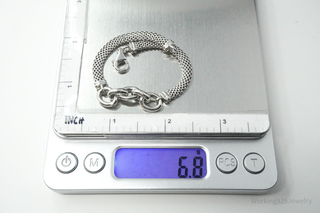 Vintage Italian Mesh Style Sterling Silver Bracelet 7.5"