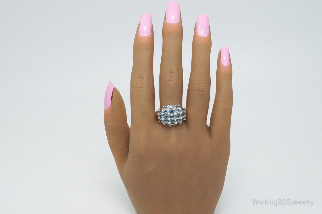 Vintage Italy Designer HAN Blue Topaz Sterling Silver Ring - Size 8.75